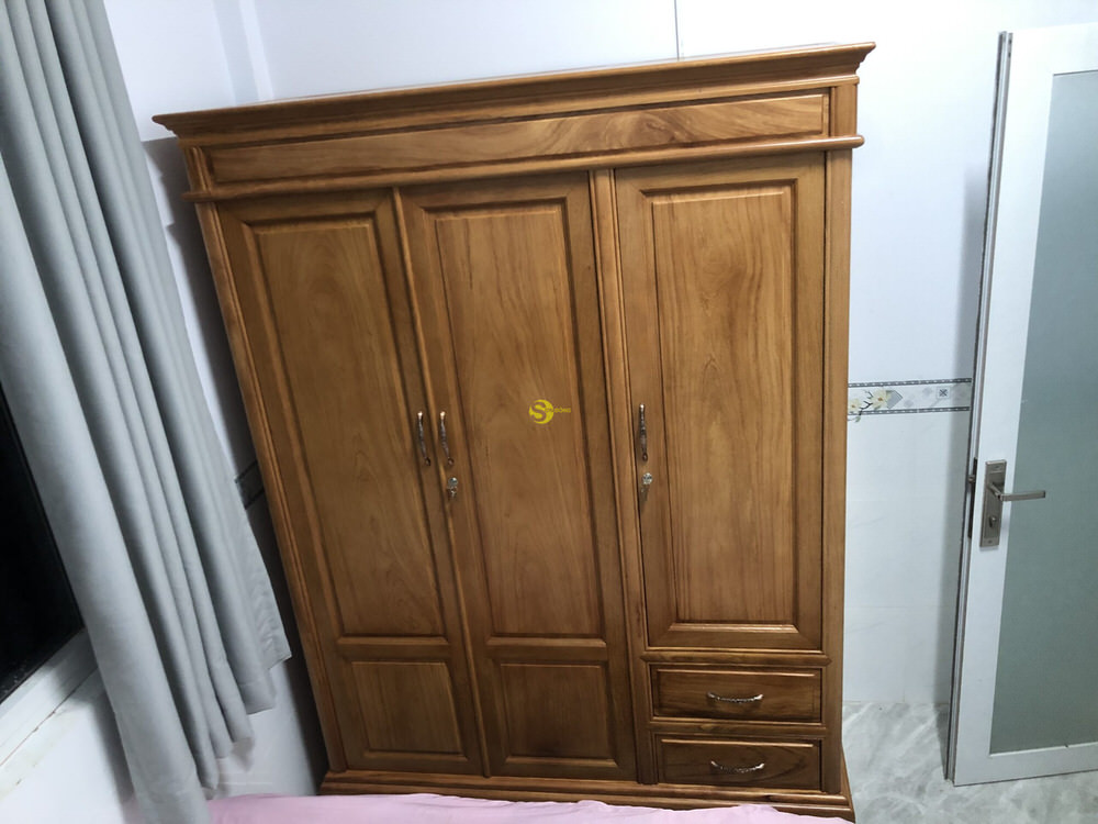 Bàn giao 3 chiếc tủ áo gỗ gõ đỏ kiểu hiện đại cho anh Sang ở Gò Công Tây, Tiền Giang