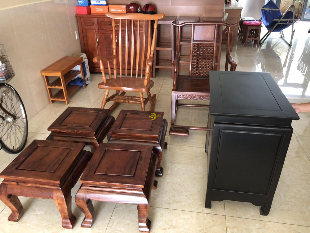 Và ngày hôm nay mời mọi người cùng theo chân Nội Thất Sơn Đông bàn giao những món nội thất gỗ cao cấp gồm 4 đôn ngồi cẩm lai hàng đặt, 1 ghế bập bênh gỗ gõ đỏ, 1 tủ nhan cho khách VIP chị Huyền ở Thủ Đức, đây là vị khách quen hồi năm 2022 đã mua ở Sơn Đông 1 bộ bàn ghế Triện Mây gỗ cẩm lai 10 món