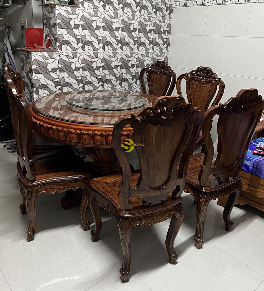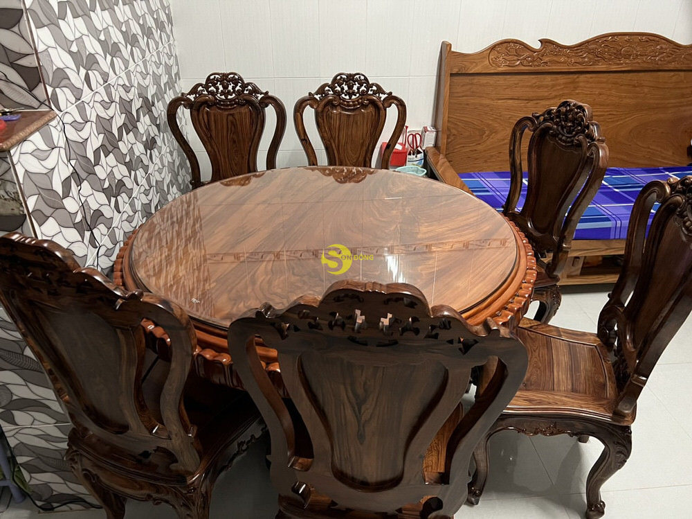 Anh Nhân – vị khách hàng VIP của nội thất Sơn Đông đã lựa chọn đặt 1 chiếc bàn ăn nguyên tấm với kích thước phù hợp với ngôi nhà của mình cùng với 6 chiếc ghế ăn gỗ cẩm lai.