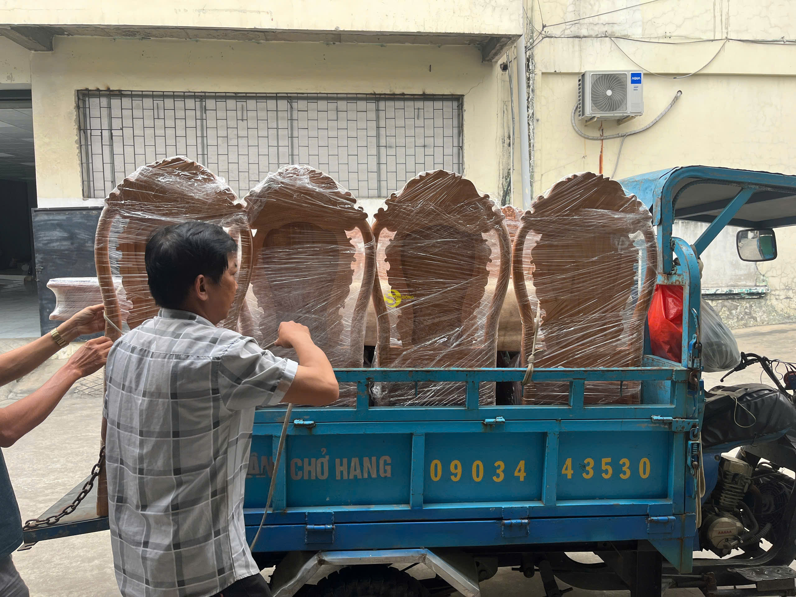 Bàn giao tủ quần áo hoàng gia gỗ cẩm lai và ghế luois gỗ cẩm lai cho chú Chín ở Bến Tre