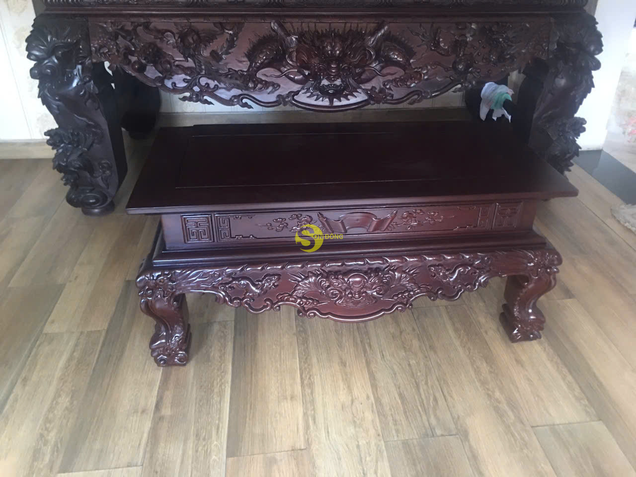 Và tiếp nối chuỗi bàn giao ngày hôm nay sẽ là mẫu bàn cúng cho khách anh Duy ở quận 2, mẫu bàn cúng được làm bằng gõ đỏ sơn màu tối để tệp với mẫu bàn thờ khách đã mua của Sơn Đông trước đó. Và đây là hình ảnh bàn giao cho anh: