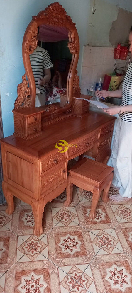 Và hôm nay mời mọi người cùng đi bàn giao Bàn phấn cổ điển Louis gỗ Gõ đỏ cho chị Hạnh ở Bình Dương, đây là vị khách lần đầu đến với đồ gỗ Sơn Đông đã chốt ưa thích mẫu mà và chốt liền trong ngày