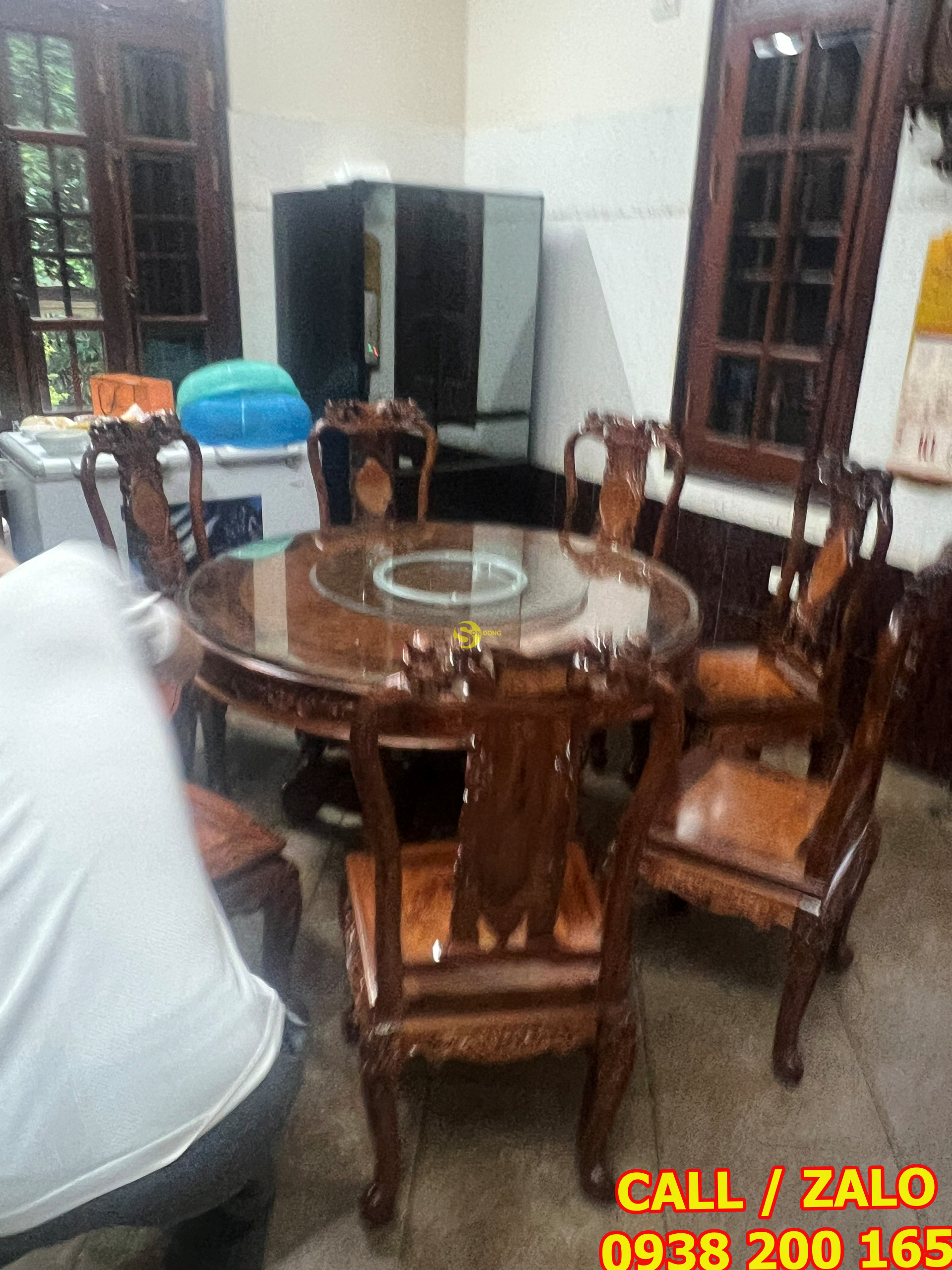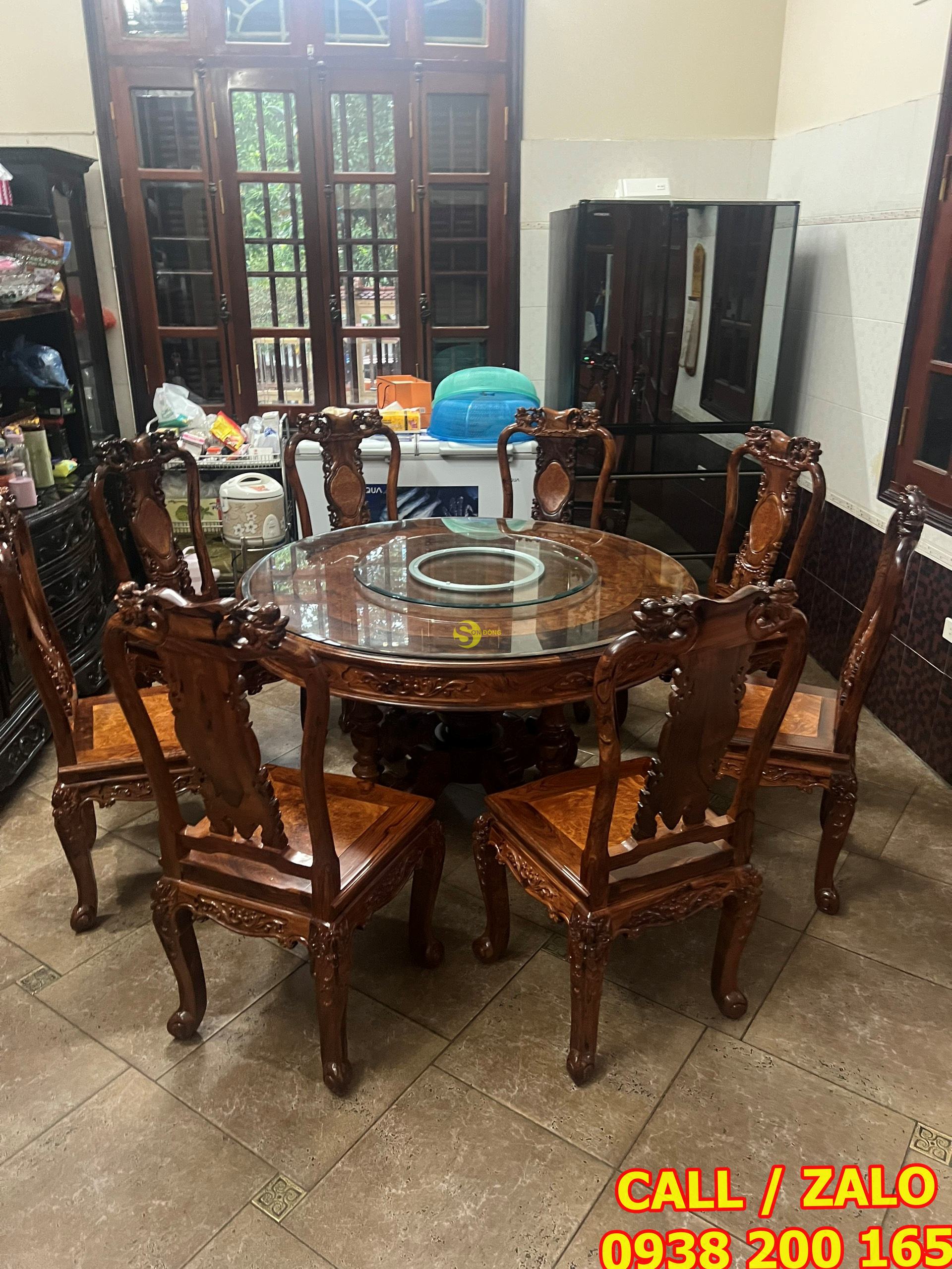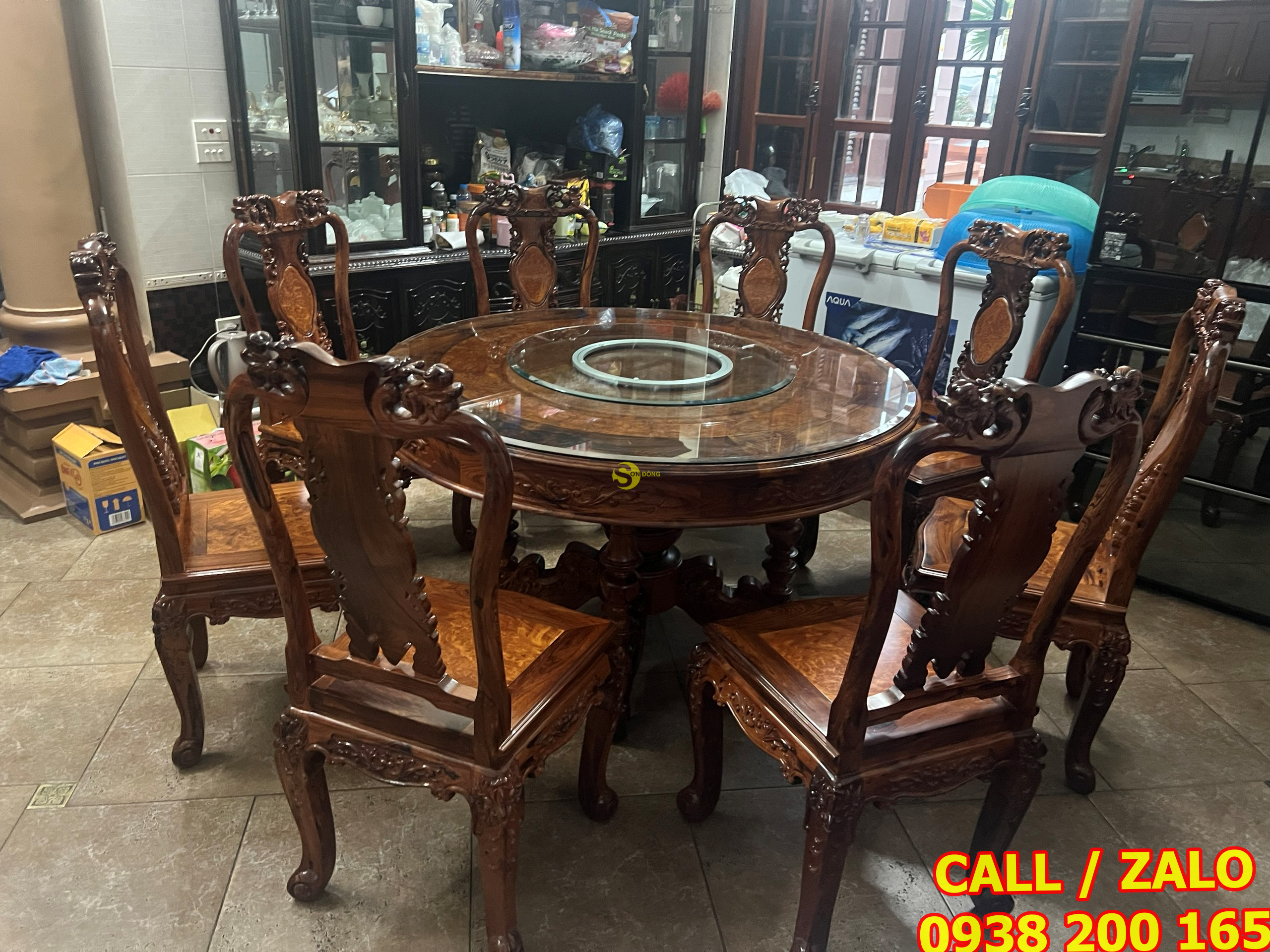 Bàn giao bộ bàn ăn Cẩm Lai mặt nu nguyên tấm cho anh Dương – Hà Nội