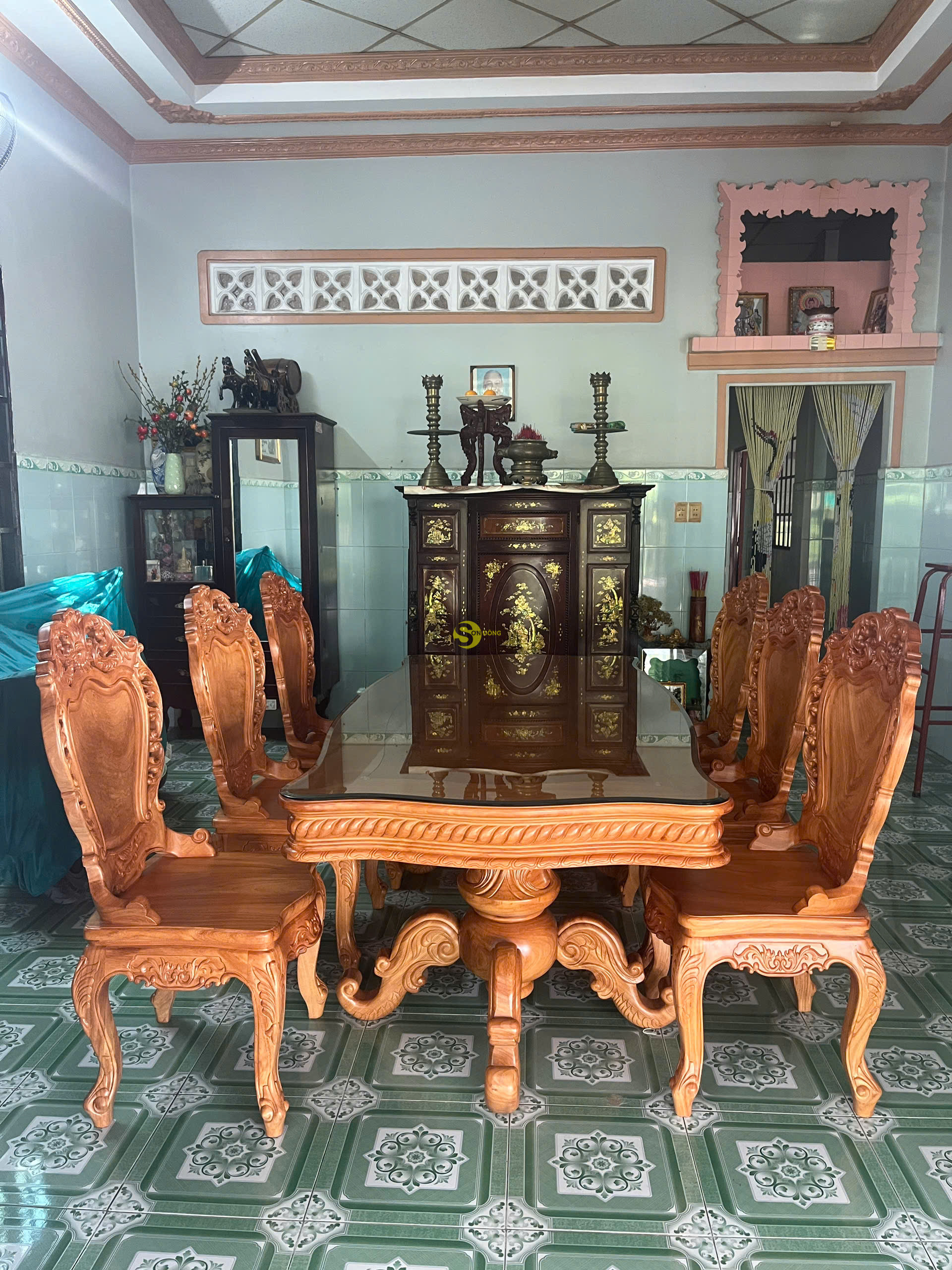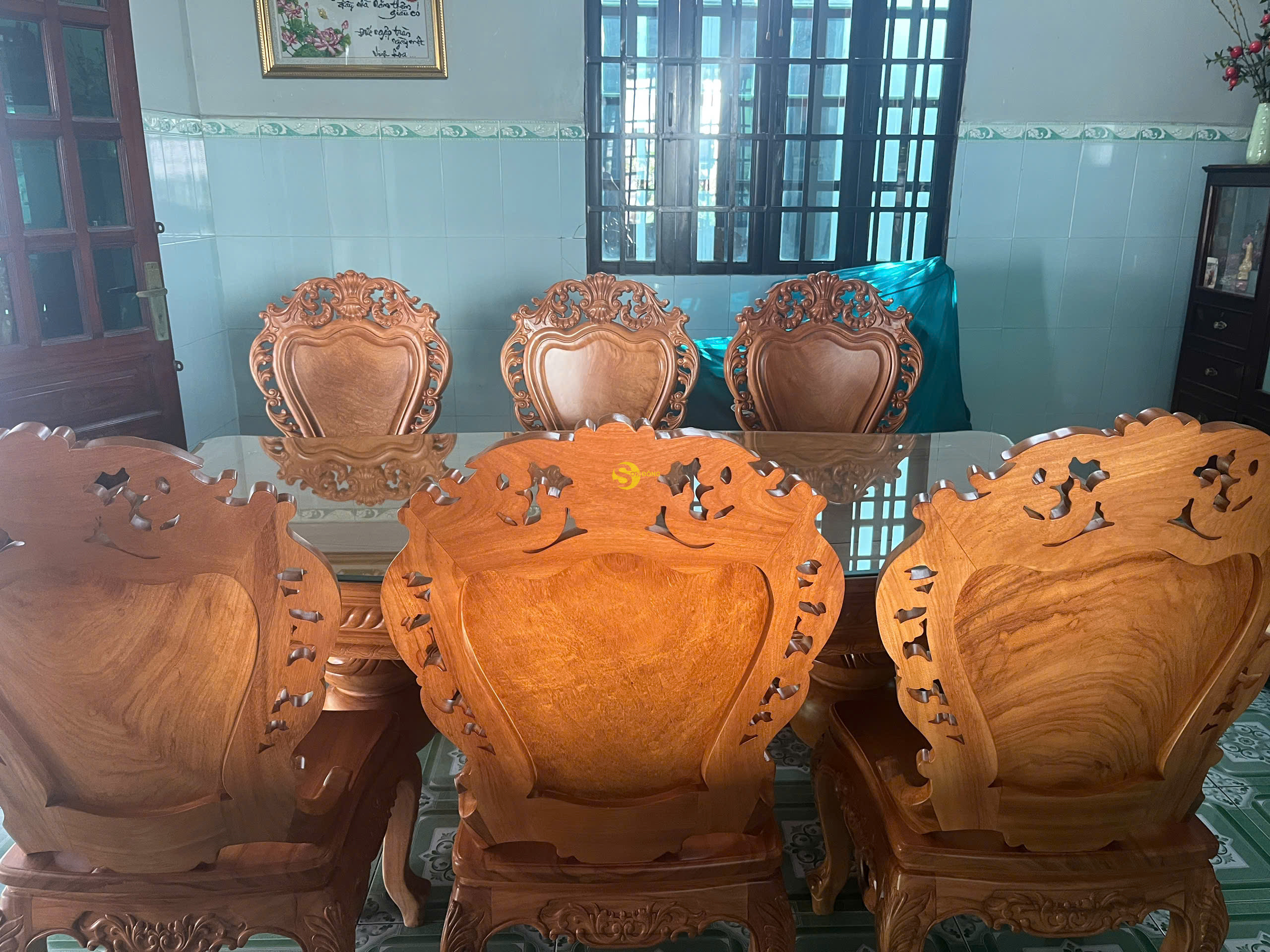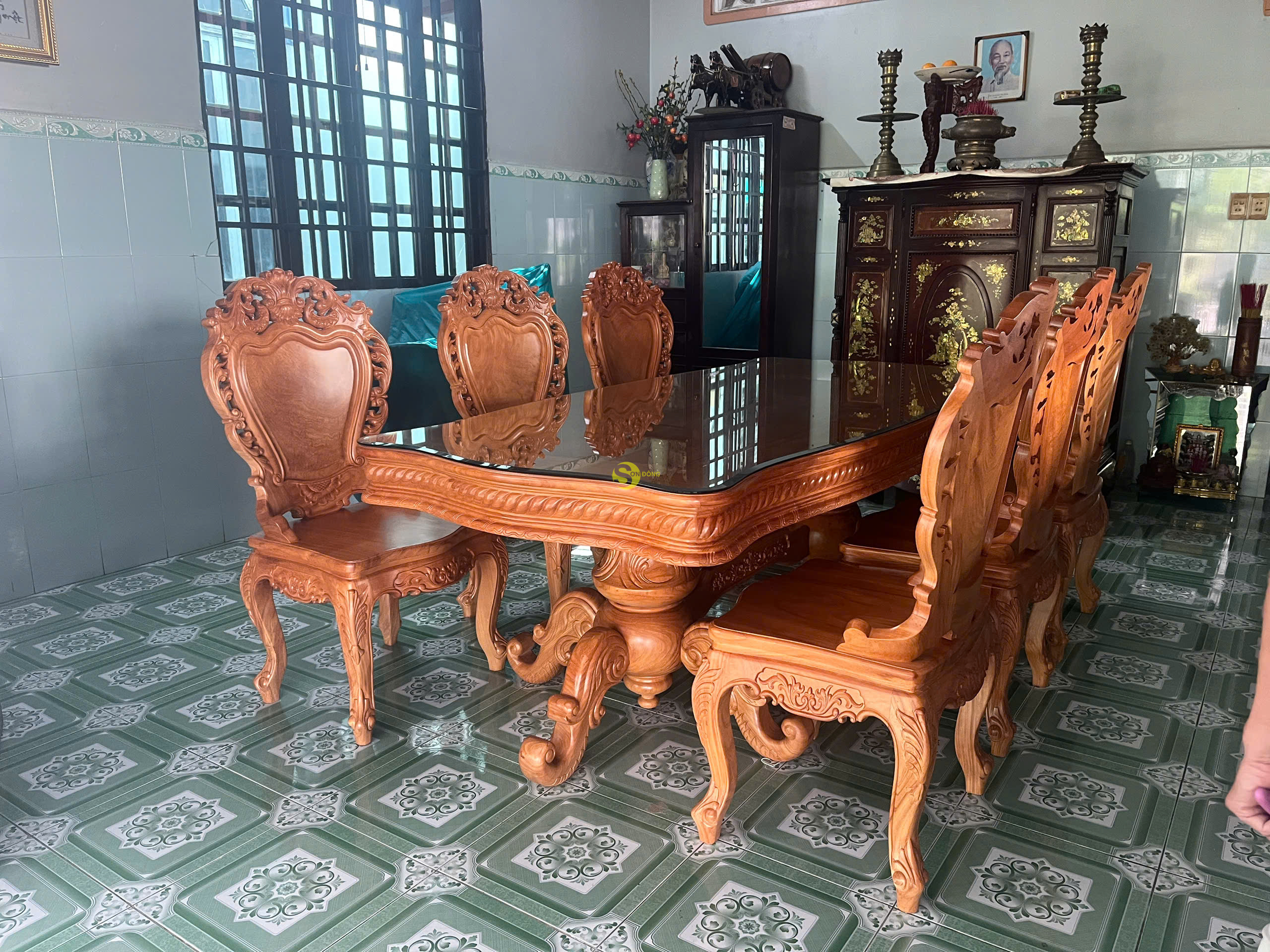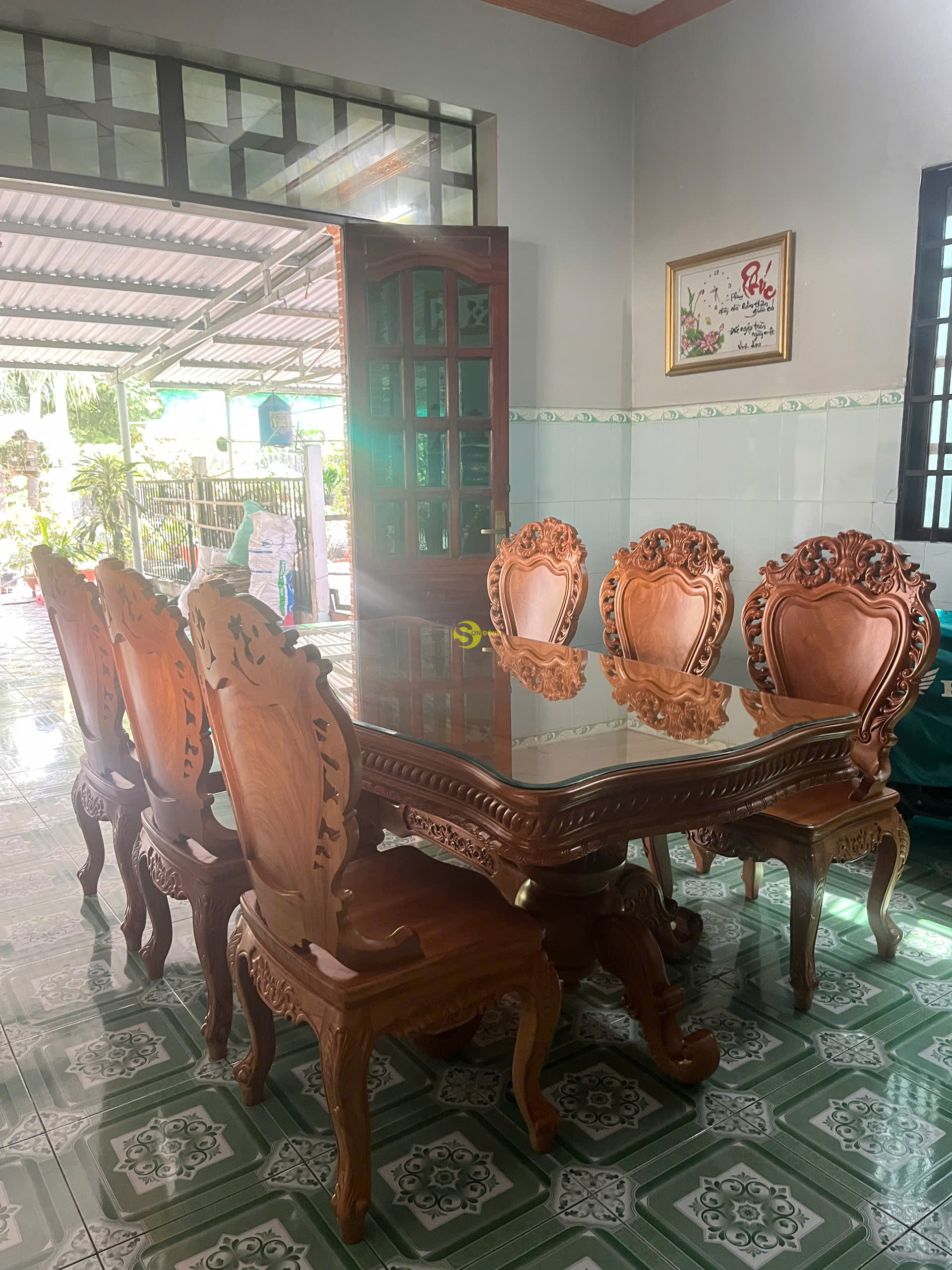 Và ngày hôm nay mời mọi người cùng Nội Thất Sơn Đông đi bàn giao 1 bộ bàn ăn 6 ghế cổ điển gỗ gõ đỏ cho khách anh Phước ở Bình Chánh TPHCM, sau đây là 1 số hình ảnh tại nhà của khách hàng chúng tôi :