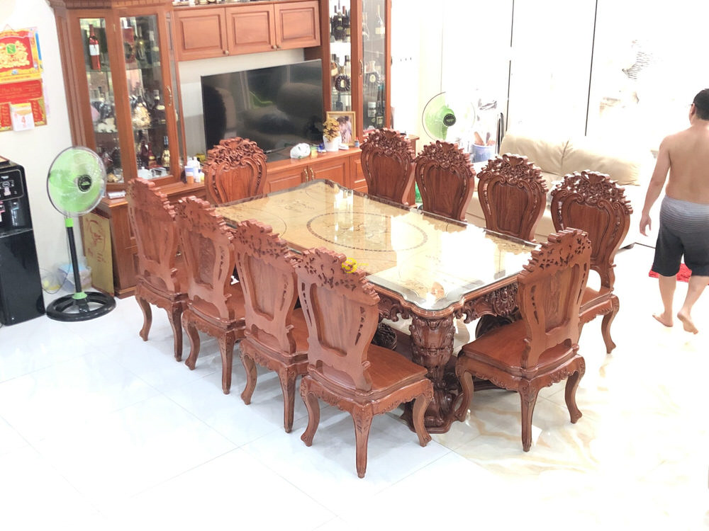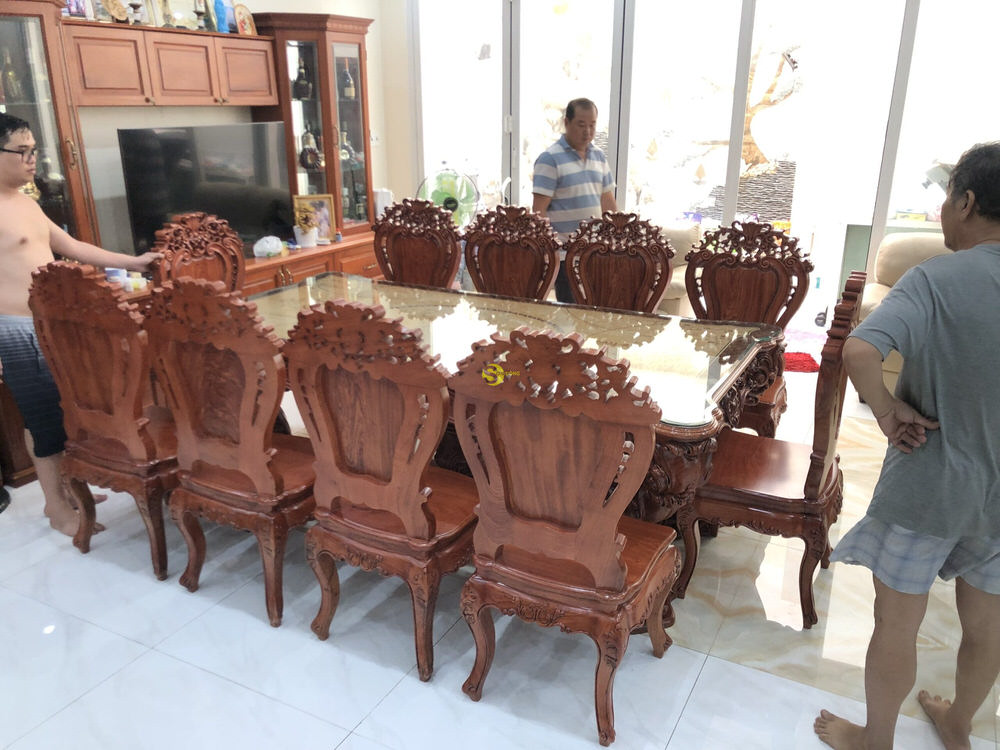 Thời điểm cận tết là thời điểm mà khách hàng Sơn Đông tất bật mua sắm để trang bị nhà cửa chào đón năm mới. Sơn Đông vừa bàn giao hoàn tất bộ bàn ăn 10 ghế với thiết kế mang phong cách hoàng gia Louis Minerva gỗ hương đá cho một vị khách đặc biệt ở quận Bình Tân