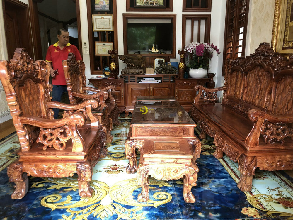 Bộ bàn ghế được làm rất tỉ mĩ từ những thớ gỗ cẩm lai được tuyển chọn kĩ lưỡng