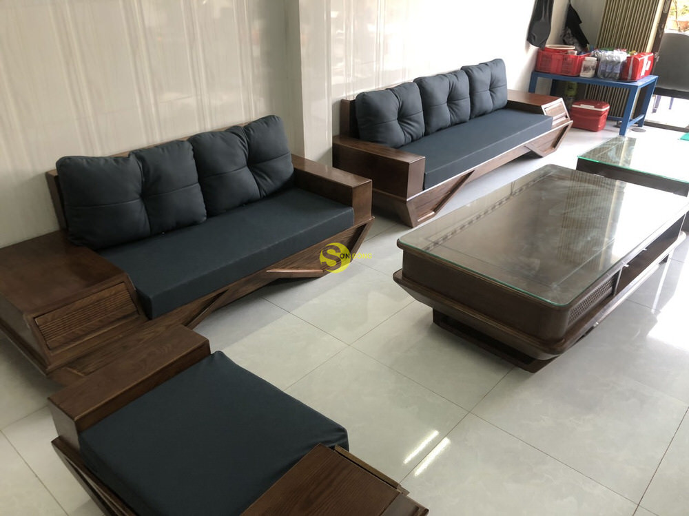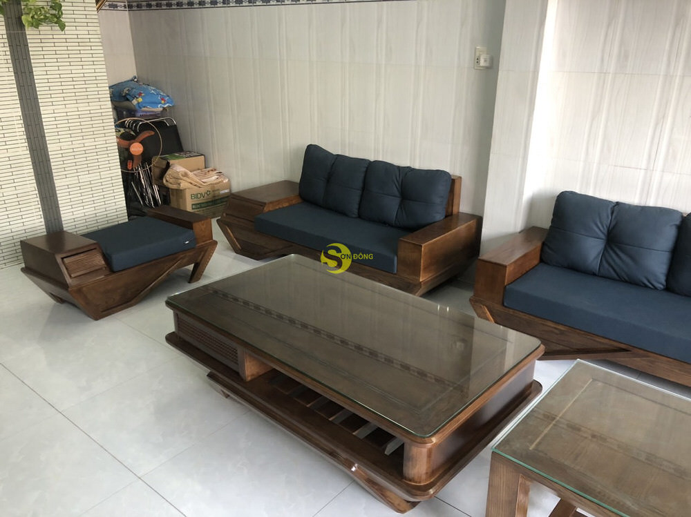 Anh Đạo sau khi tham thảo và tìm hiểu đã lựa chọn bộ sofa gỗ sồi 5 món cho không gian nhà của mình, và đây là hình ảnh bàn giao sản phẩm tại nhà khách hàng.