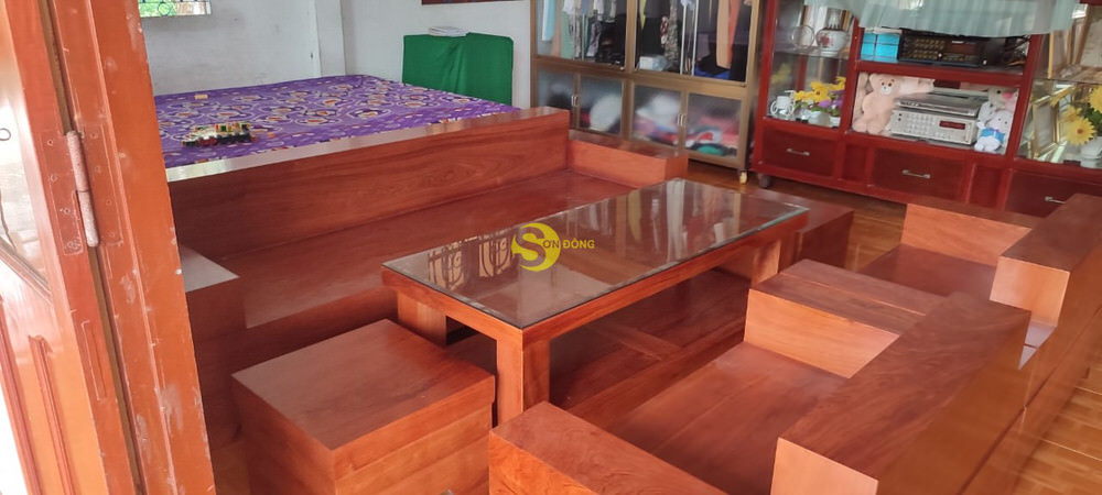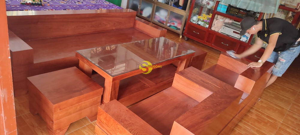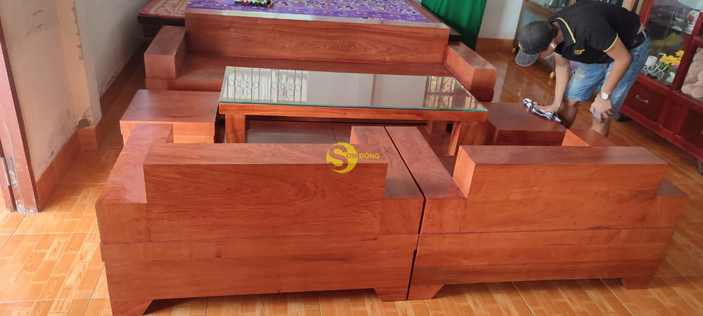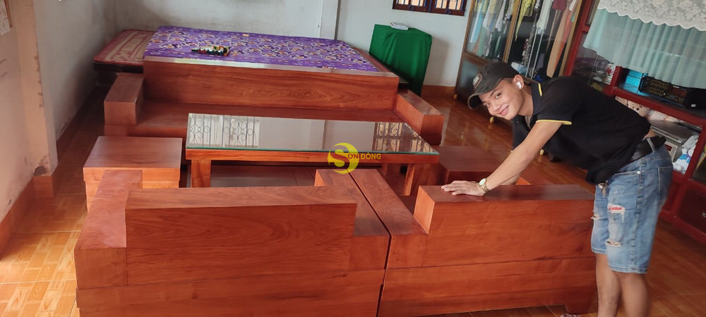 Bàn giao hoàn tất bộ sofa gỗ gõ đỏ cho anh Hùng khách vip ở Bình Chánh