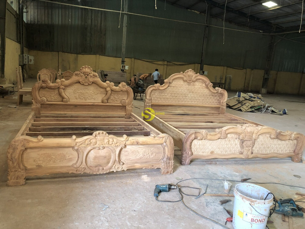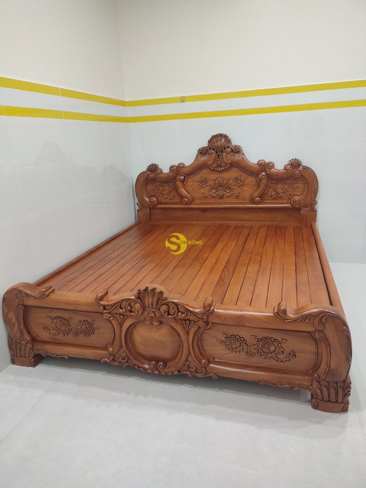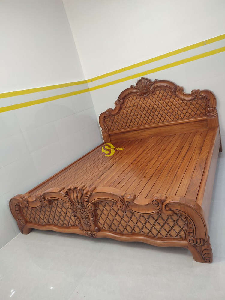 Bàn giao mẫu giường ngủ hoa văn gỗ gõ đỏ 1.8m cho chú Hoàng ở Quận 7
