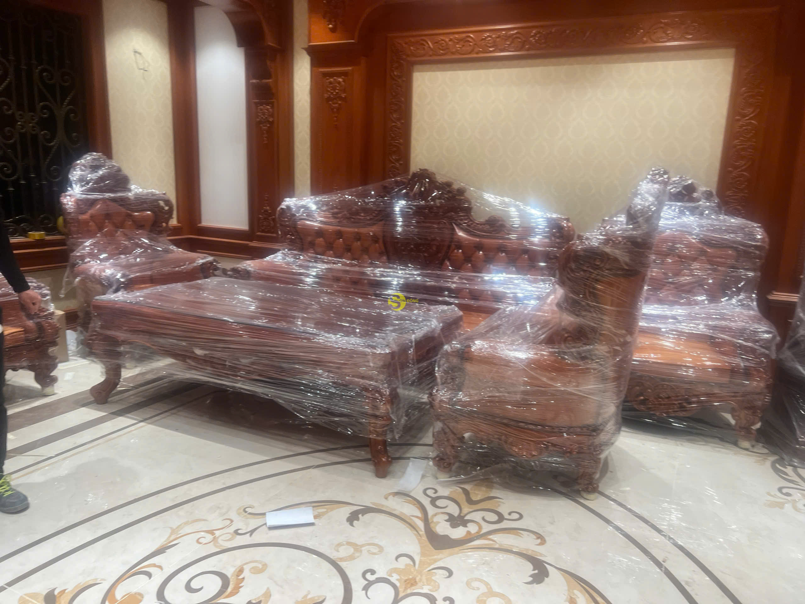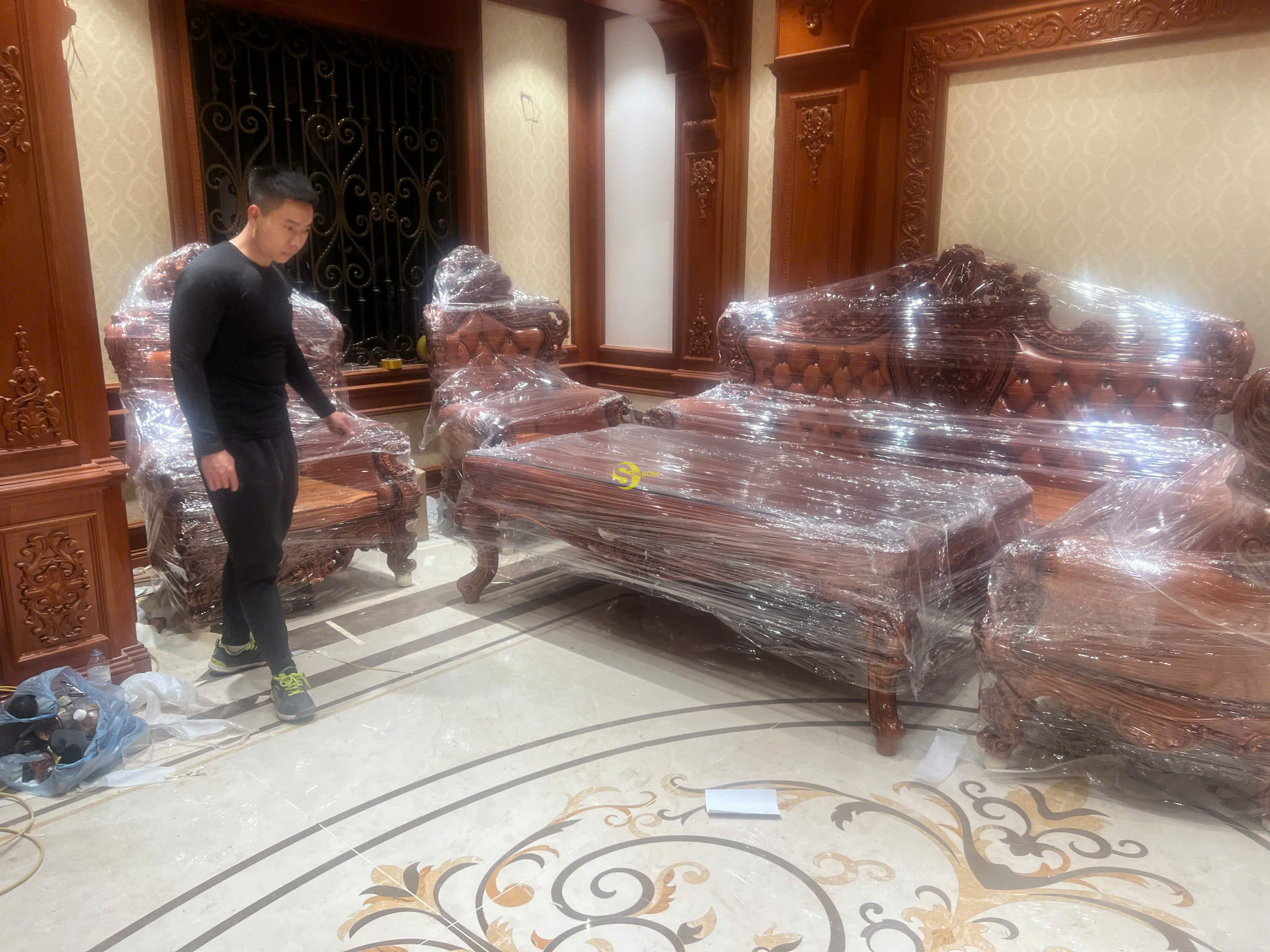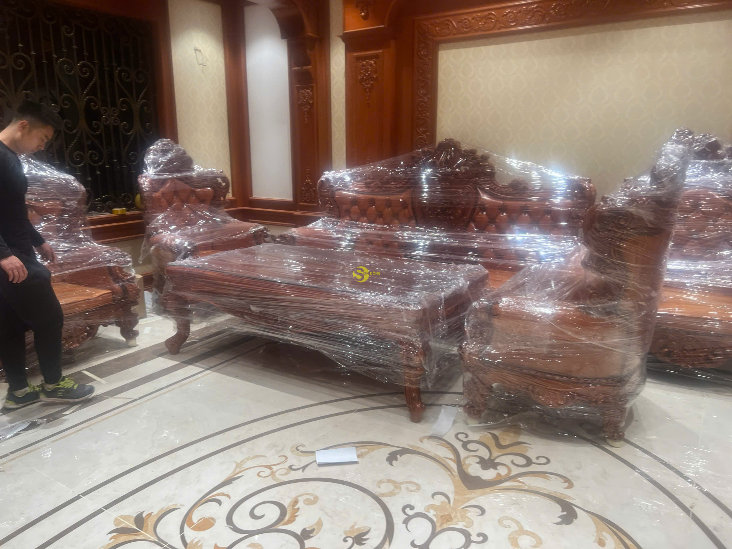 Ngày hôm nay, đội ngũ của chúng tôi rất tự hào khi chính thức bàn giao bộ Sofa Hoàng Gia Luxury gỗ gõ đỏ nguyên khối 6 món cho anh Sỹ tại Bắc Ninh. Bộ sản phẩm không chỉ mang giá trị nội thất cao cấp mà còn là biểu tượng của phong cách sống đẳng cấp, thể hiện gu thẩm mỹ tinh tế của gia chủ. Là dòng sản phẩm nội thất Hoàng Gia Luxury, bộ sofa được thiết kế đặc biệt với sự kết hợp hoàn hảo giữa chất liệu gỗ gõ đỏ tự nhiên cao cấp và phong cách châu Âu cổ điển sang trọng. Sản phẩm được chế tác hoàn toàn từ gỗ nguyên khối, mang đến vẻ đẹp bền vững, giá trị sử dụng lâu dài và sự tinh tế vượt thời gian.