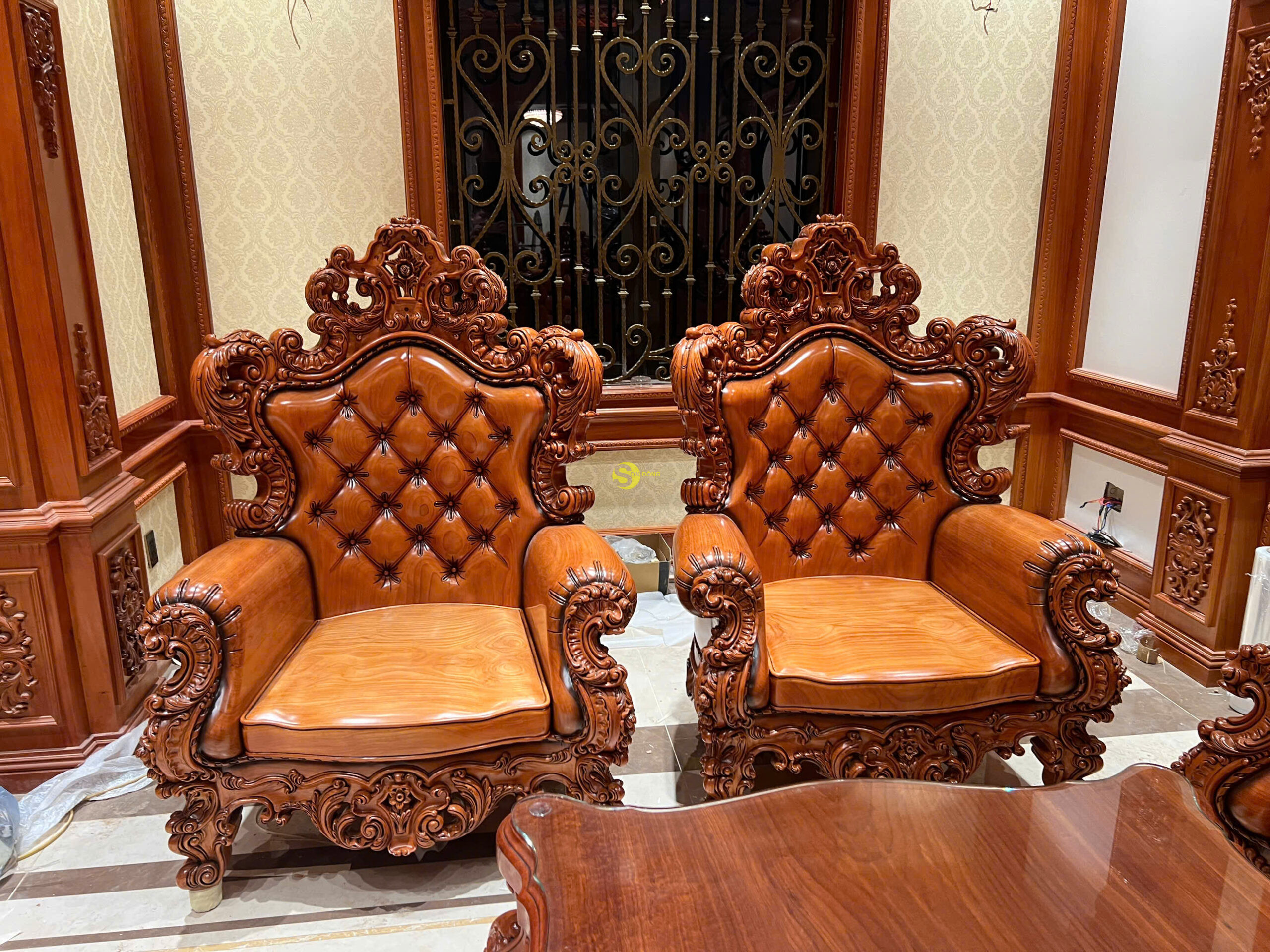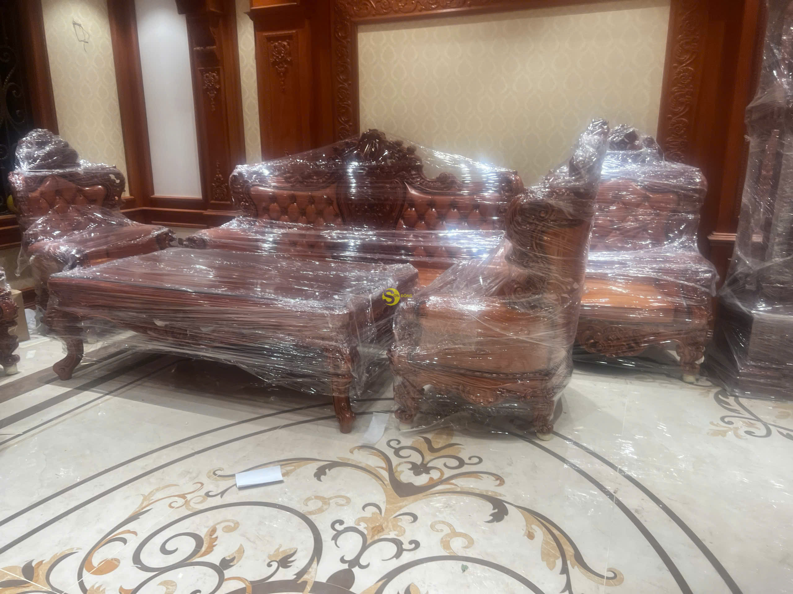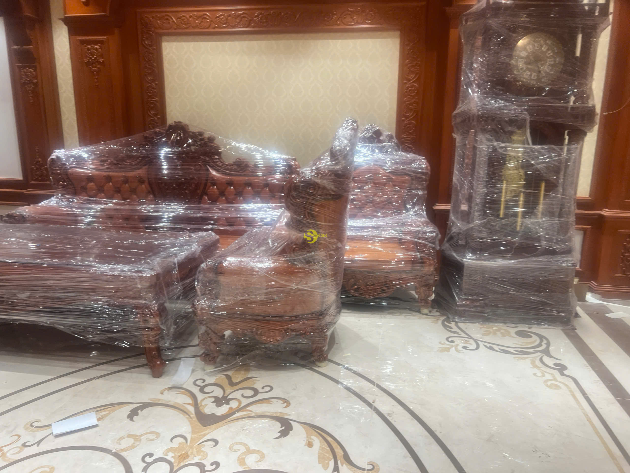 Ngày hôm nay, đội ngũ của chúng tôi rất tự hào khi chính thức bàn giao bộ Sofa Hoàng Gia Luxury gỗ gõ đỏ nguyên khối 6 món cho anh Sỹ tại Bắc Ninh. Bộ sản phẩm không chỉ mang giá trị nội thất cao cấp mà còn là biểu tượng của phong cách sống đẳng cấp, thể hiện gu thẩm mỹ tinh tế của gia chủ. Là dòng sản phẩm nội thất Hoàng Gia Luxury, bộ sofa được thiết kế đặc biệt với sự kết hợp hoàn hảo giữa chất liệu gỗ gõ đỏ tự nhiên cao cấp và phong cách châu Âu cổ điển sang trọng. Sản phẩm được chế tác hoàn toàn từ gỗ nguyên khối, mang đến vẻ đẹp bền vững, giá trị sử dụng lâu dài và sự tinh tế vượt thời gian.