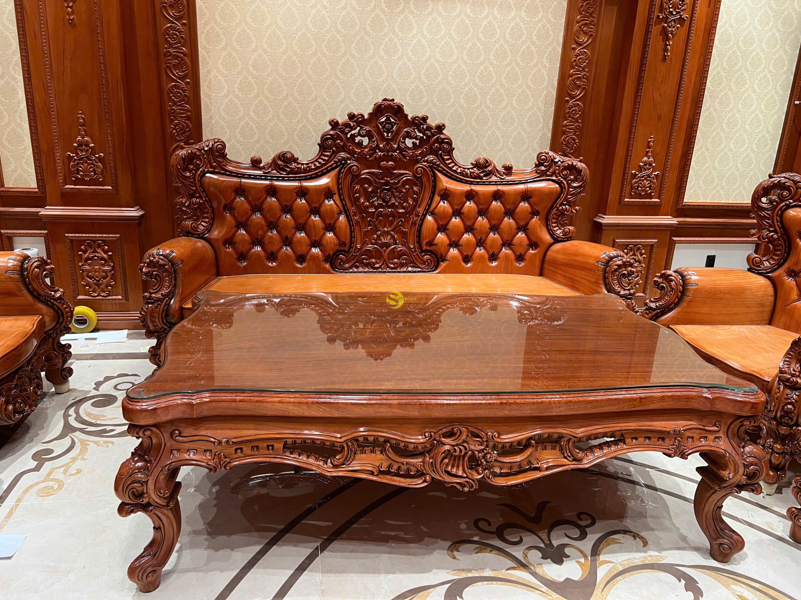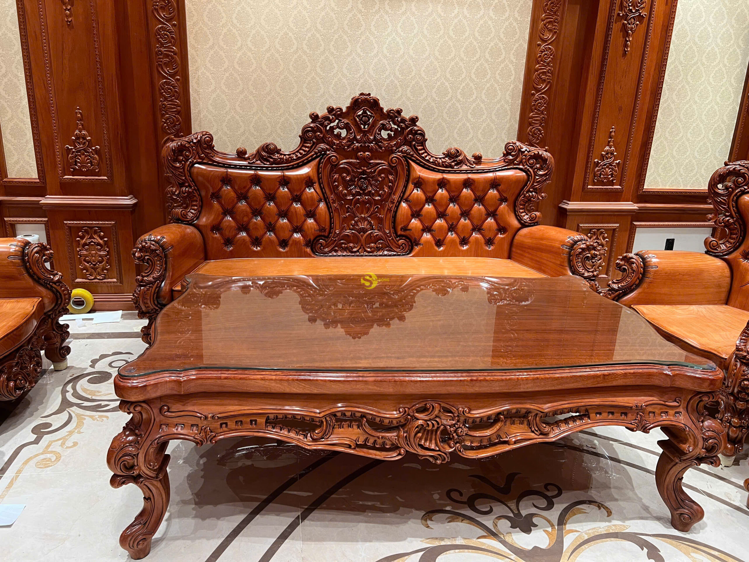 Chi tiết bộ Sofa Hoàng Gia Luxury gỗ gõ đỏ