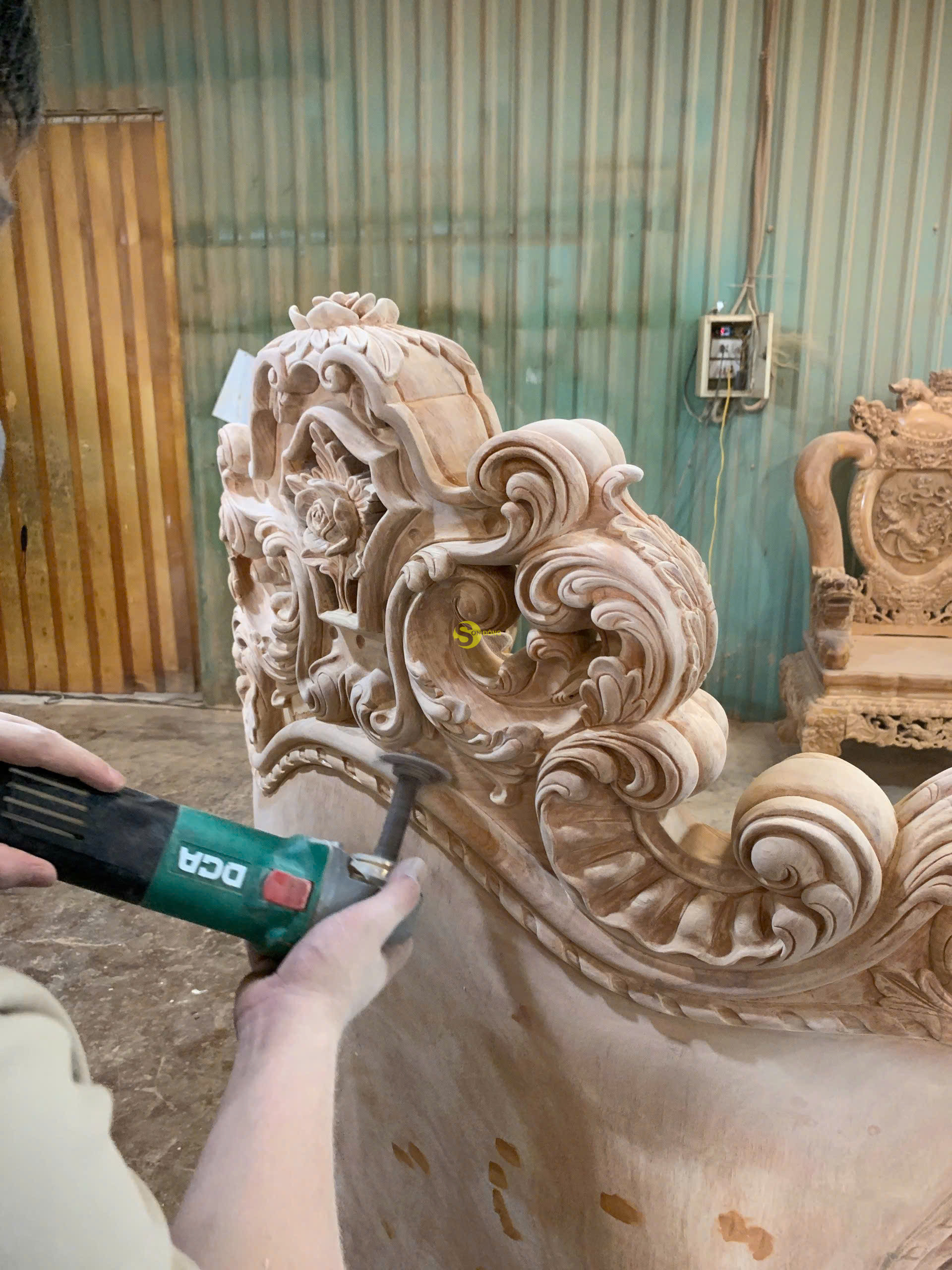Chế tác công phu và kiểm tra nghiêm ngặt Để hoàn thiện bộ Sofa Hoàng Gia Luxury này, đội ngũ thợ thủ công đã dành hàng tháng trời để thực hiện từ khâu chọn gỗ, cắt gọt, tạo hình, chạm khắc đến đánh bóng. Tất cả đều được thực hiện thủ công để đảm bảo từng đường nét đạt đến độ hoàn hảo. Trước khi bàn giao, sản phẩm đã trải qua quy trình kiểm tra nghiêm ngặt về chất lượng, từ độ chắc chắn, bề mặt gỗ, đến tính ổn định của các chi tiết.