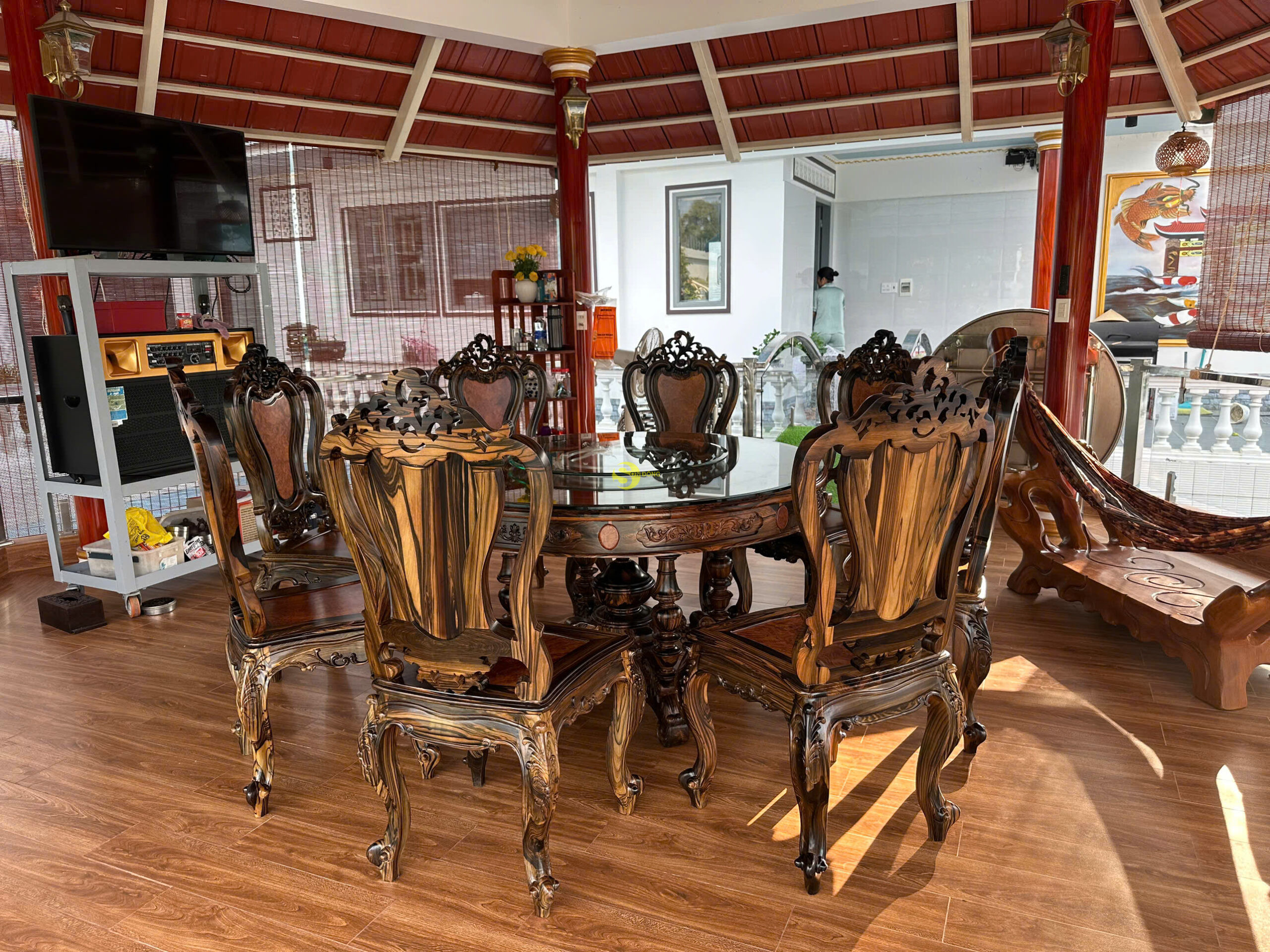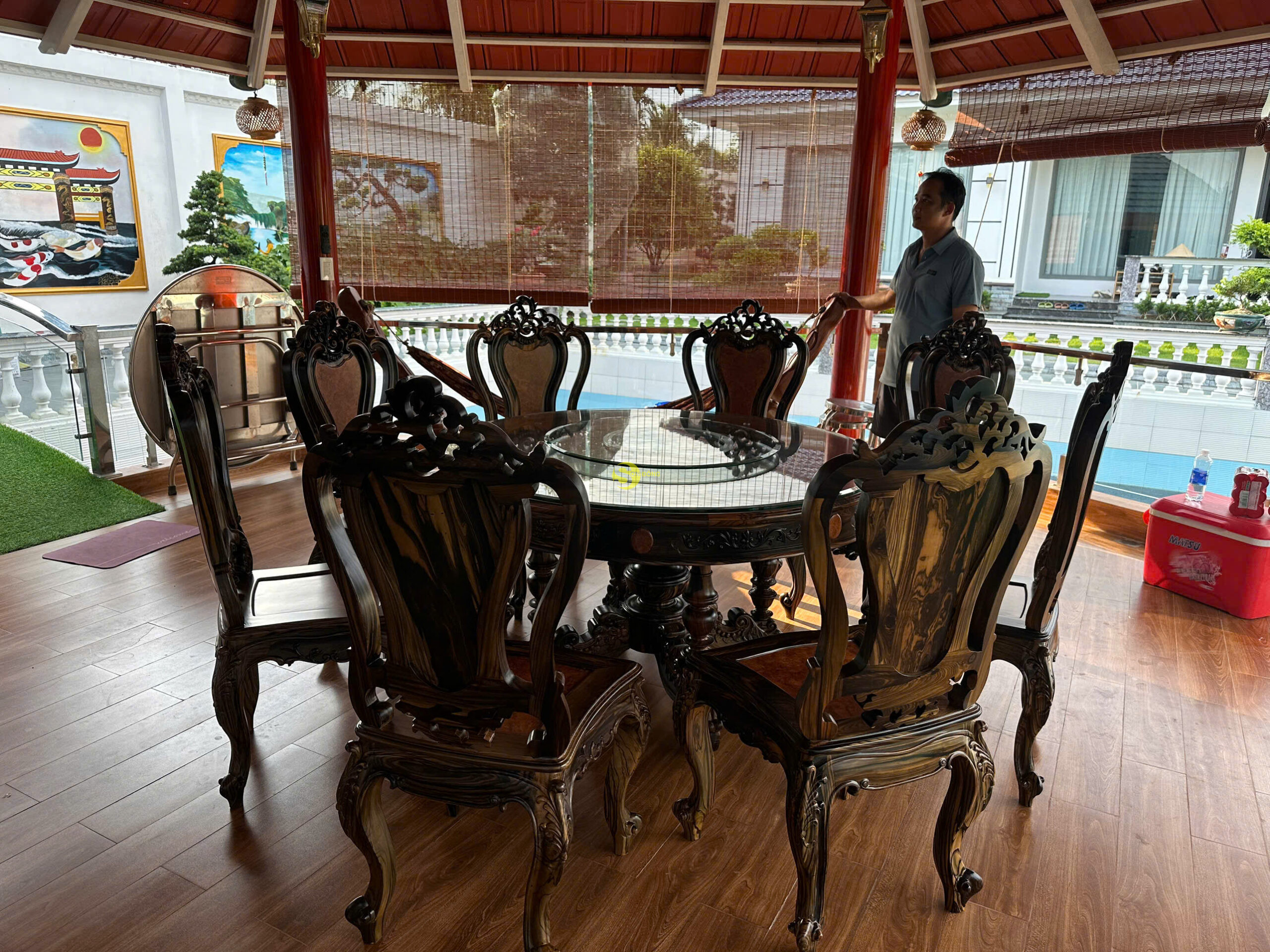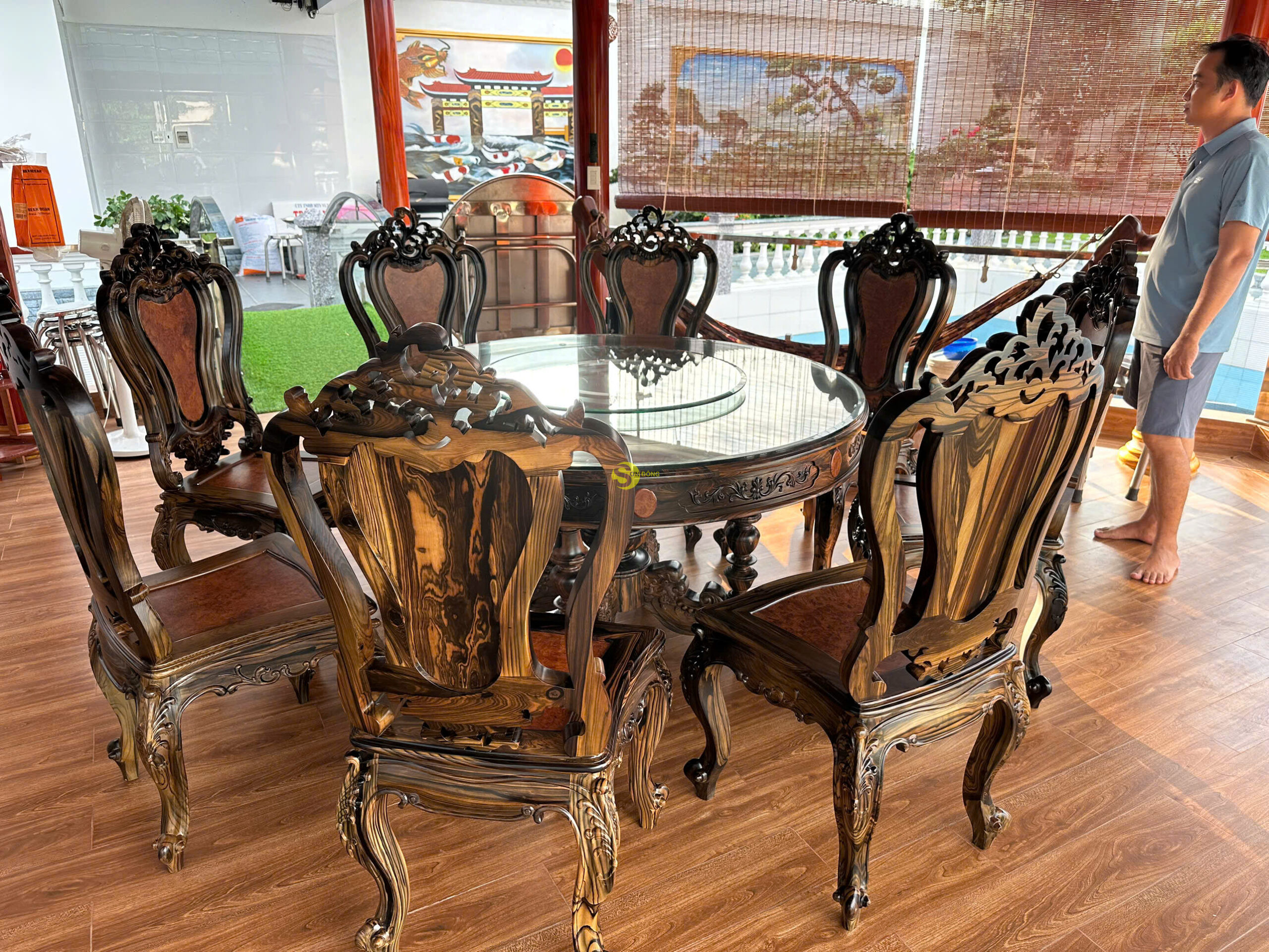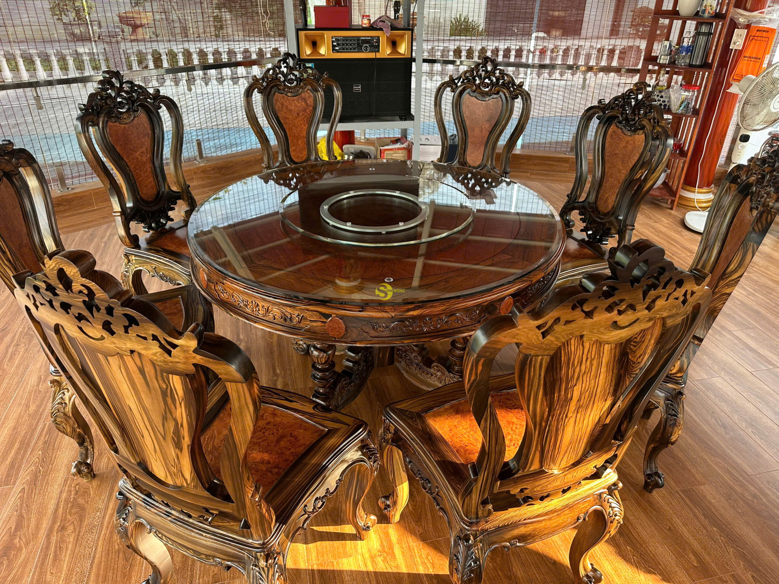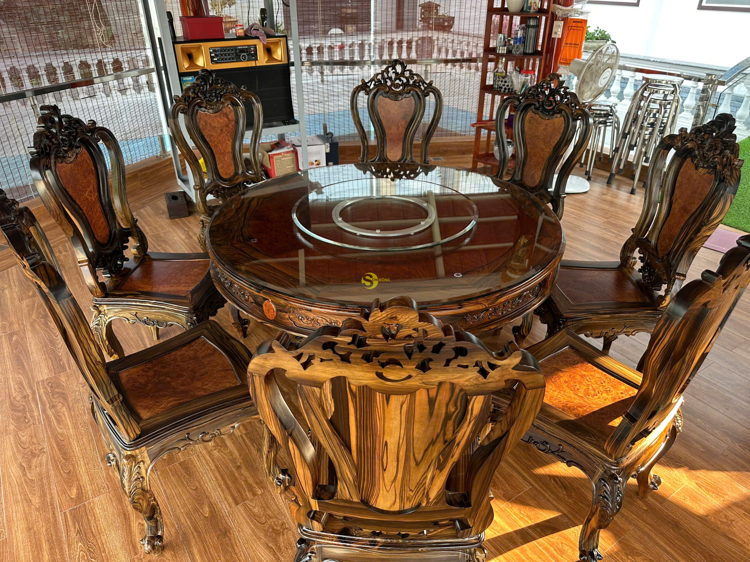 Chúng tôi hân hoan thông báo đã hoàn tất bàn giao bộ bàn ăn 8 ghế mang đậm phong cách Louis với chất liệu mun sọc cẩn nu cho anh Hiệp tại Hậu Giang. Đây là một sản phẩm được chăm chút tỉ mỉ từ khâu lựa chọn nguyên liệu đến khâu gia công, nhằm mang lại sự tinh tế, bền đẹp và đẳng cấp cho không gian bếp ăn gia đình