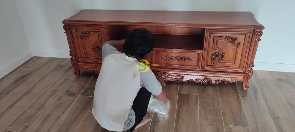 Tuy chưa mua hàng bên Sơn Đông lần nào nhưng anh Phổ đã quyết định tin tưởng và đặt mua chiếc tủ tivi bởi vì anh đã thấy được nét đẹp trong những đường chạm cổ điển cũng như chất liệu gỗ