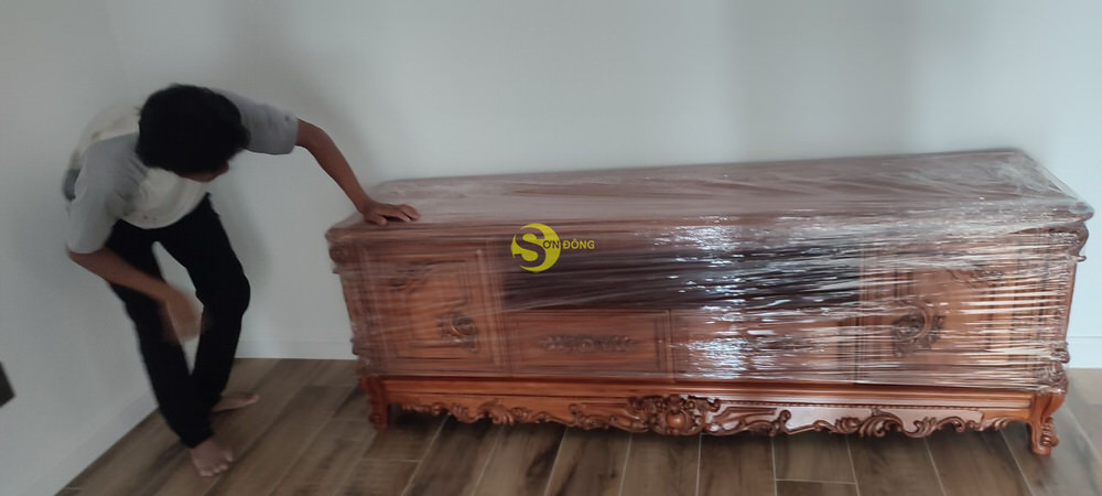 Bàn giao hoàn tất bộ sofa gỗ gõ đỏ cho anh Hùng khách vip ở Bình Chánh