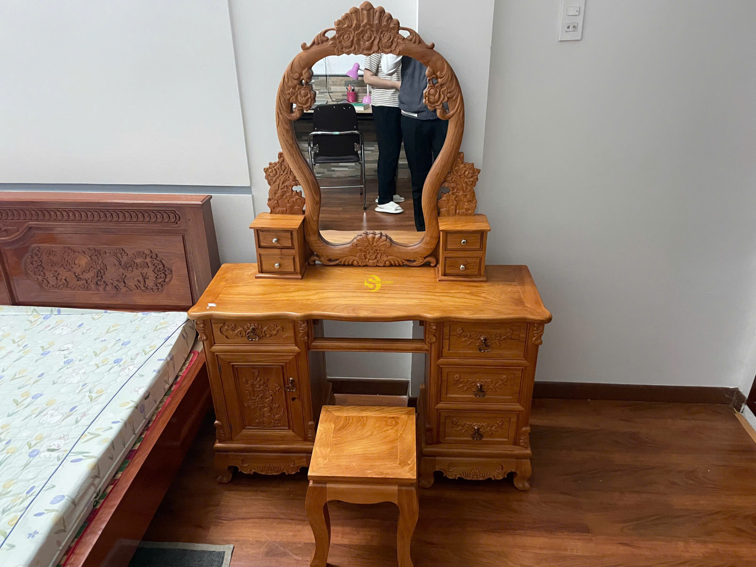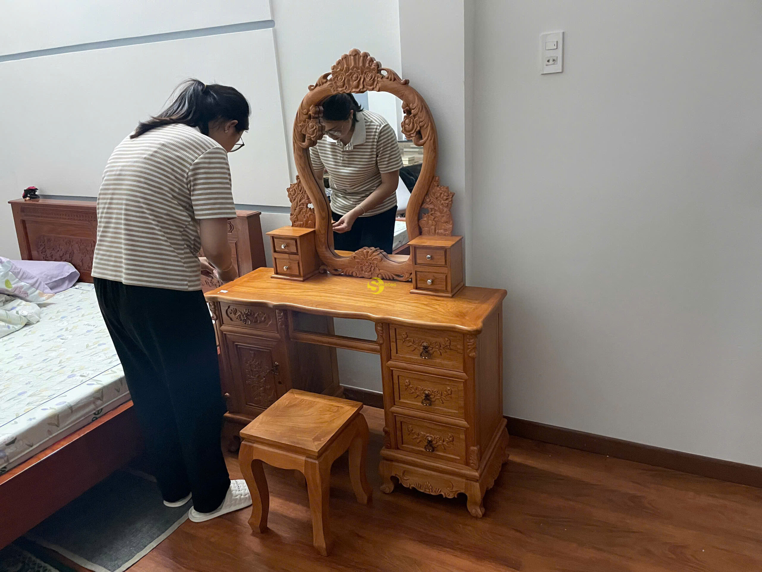 Và ngày hôm nay mời mọi người cùng em đi bàn giao 1 sản phẩm bàn phấn tân cổ điển gỗ gõ đỏ này cho khách chị Huyền ở Thủ Đức nhé, đây là 1 vị khách củ đã mua hàng của Nội Thất Sơn Đông, và sau đây là những hình ảnh thực tế được chụp tại nhà khách hàng của chúng tôI: