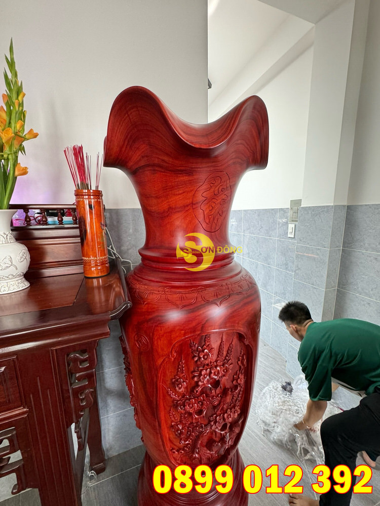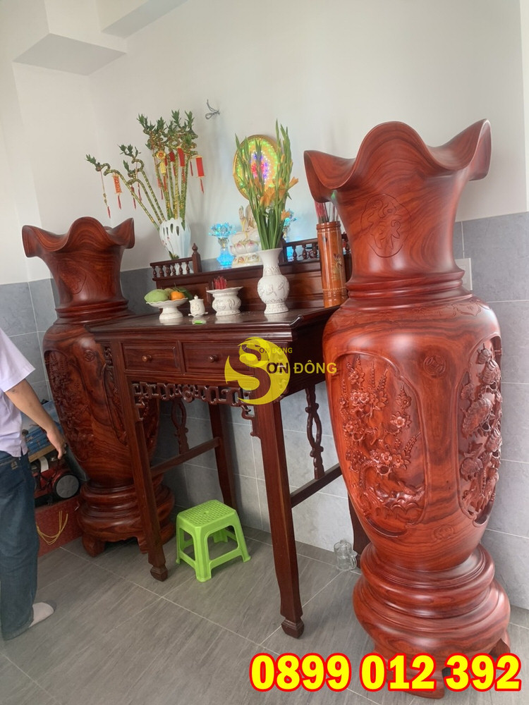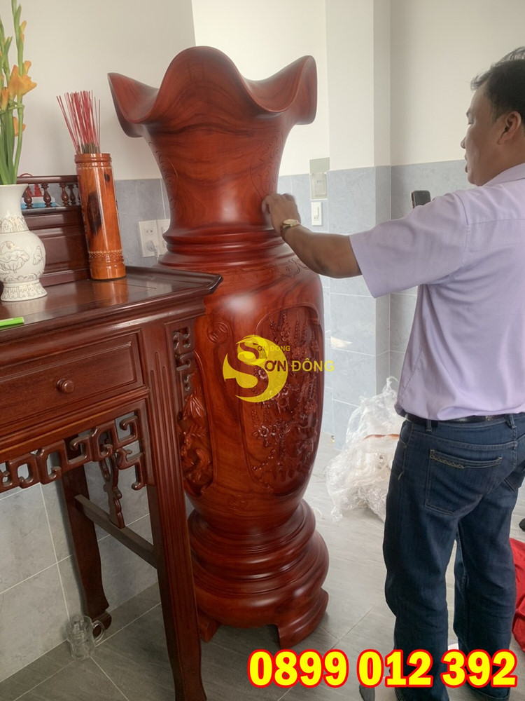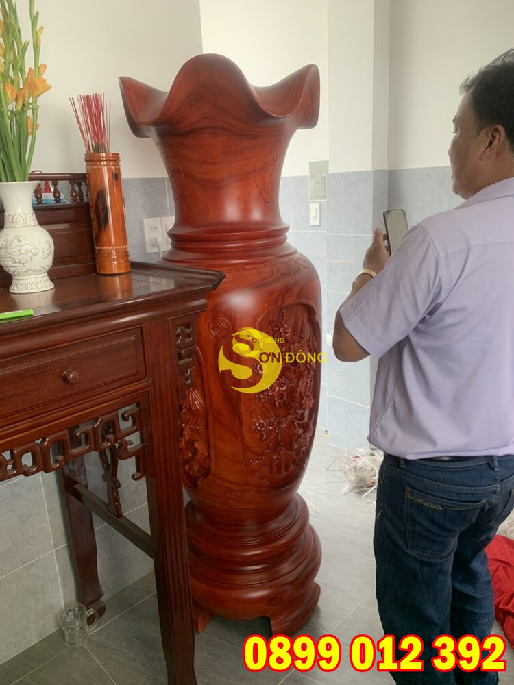 Anh Trí là 1 khách hàng cũ đã mua hàng bên Sơn Đông trước đó anh đã mua 1 cặp lục bình chạm tứ quý do vì quá ưng và yêu thích hàng bên Sơn Đông. Vào 1 ngày đẹp trời của cái nắng Sài Gòn 38 – 40 độ anh đã ghé lại cửa hàng để chốt thêm 1 cặp để trưng bày trong phòng thờ cho nhà anh.