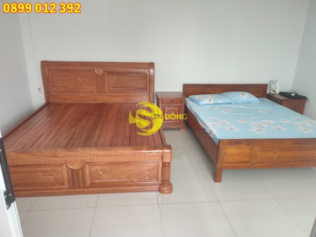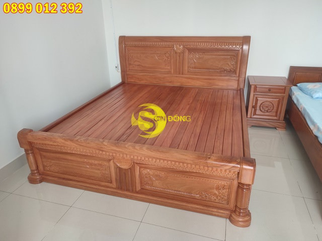 Bàn giao mẫu giường ngủ hoa văn gỗ gõ đỏ 1.8m cho chú Hoàng ở Quận 7