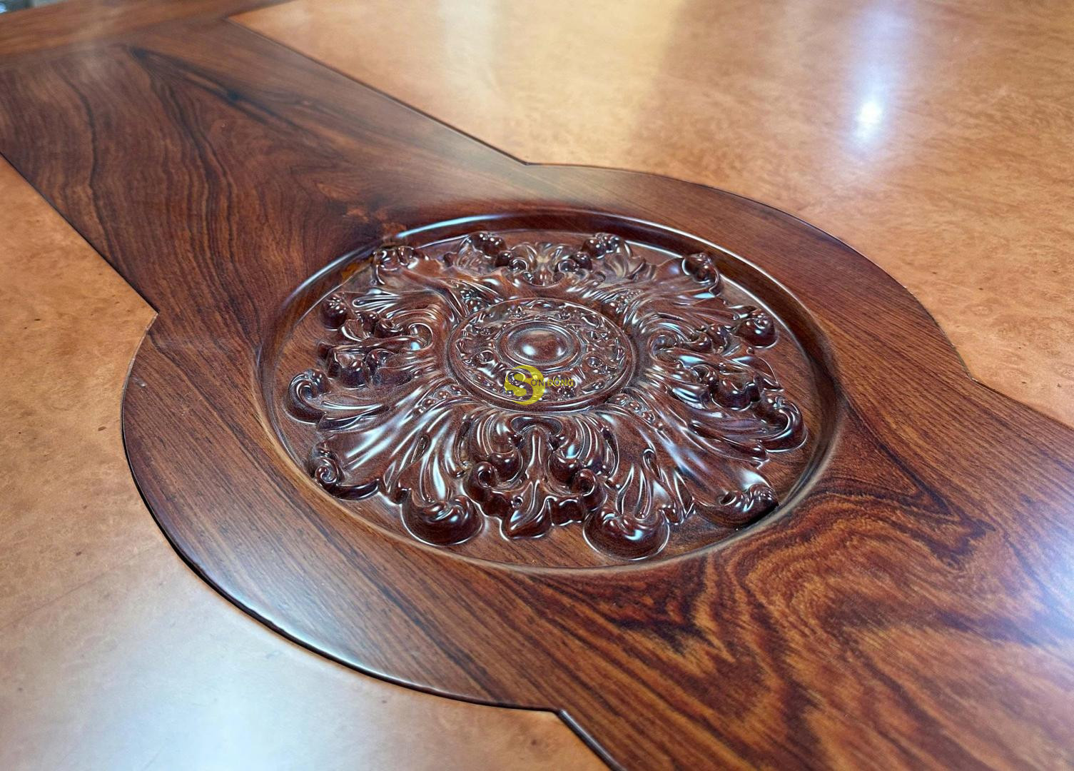 Chất liệu: Gỗ Cẩm lai + Cẩn verner nu gỗ gõ đỏ