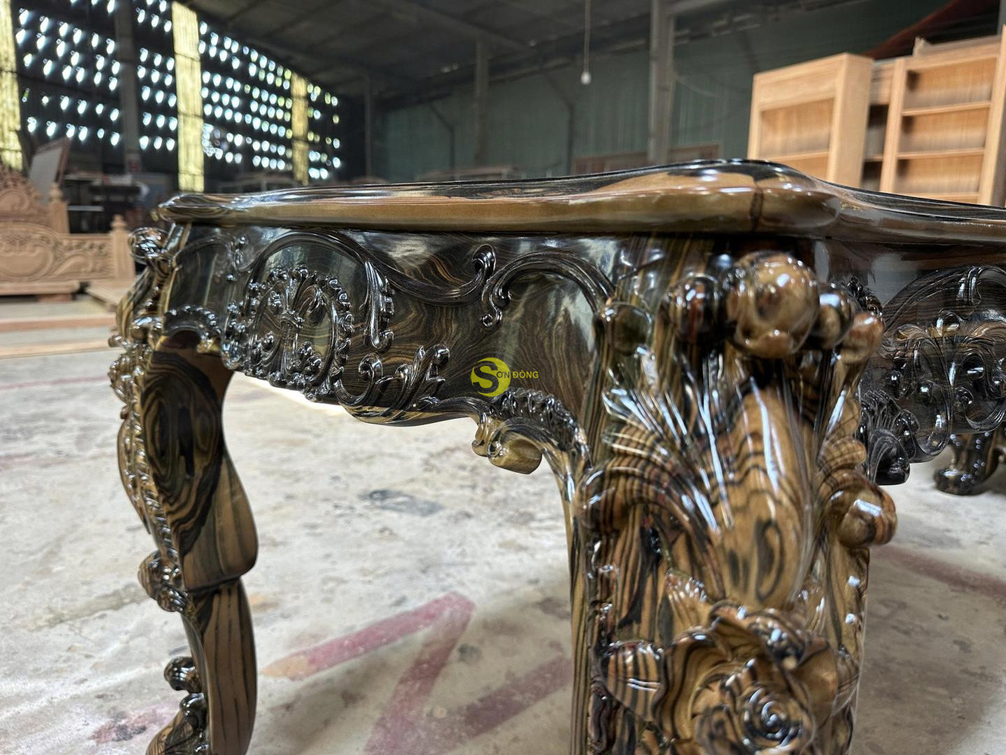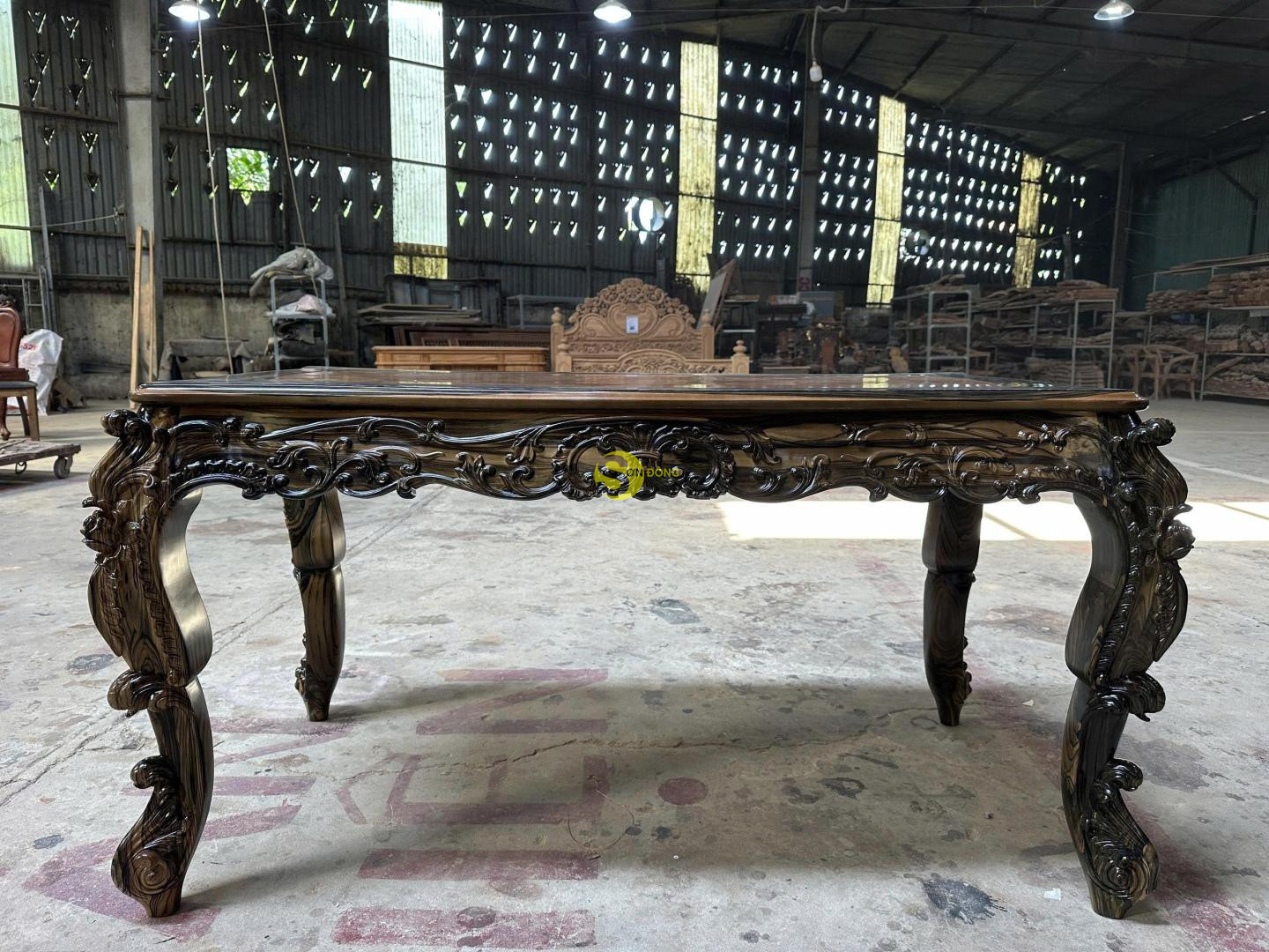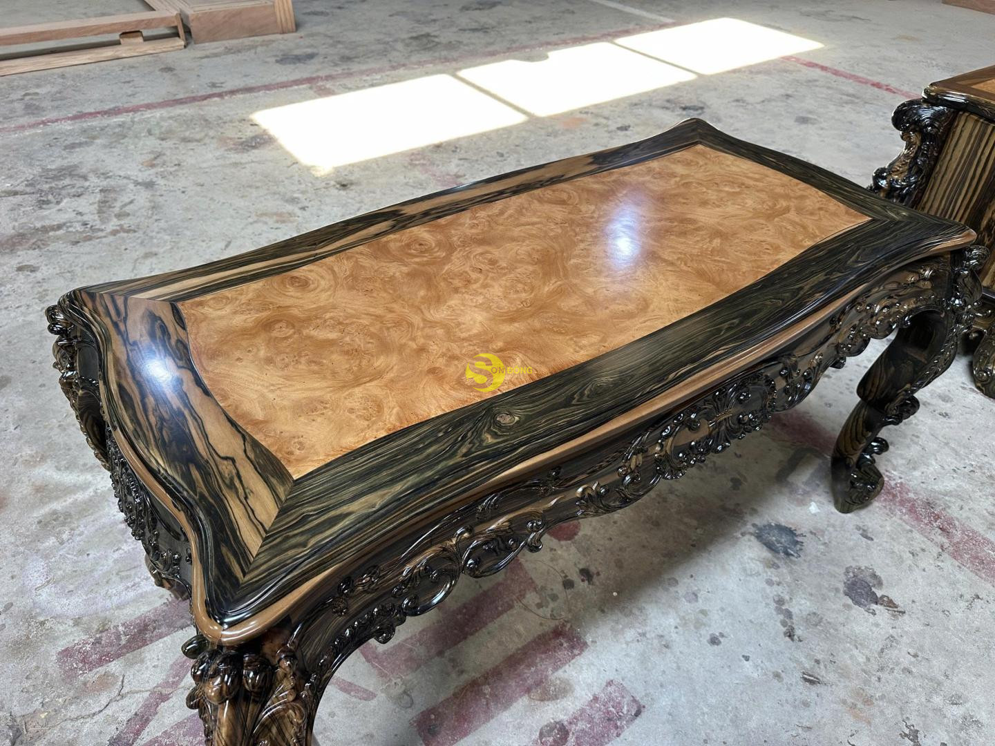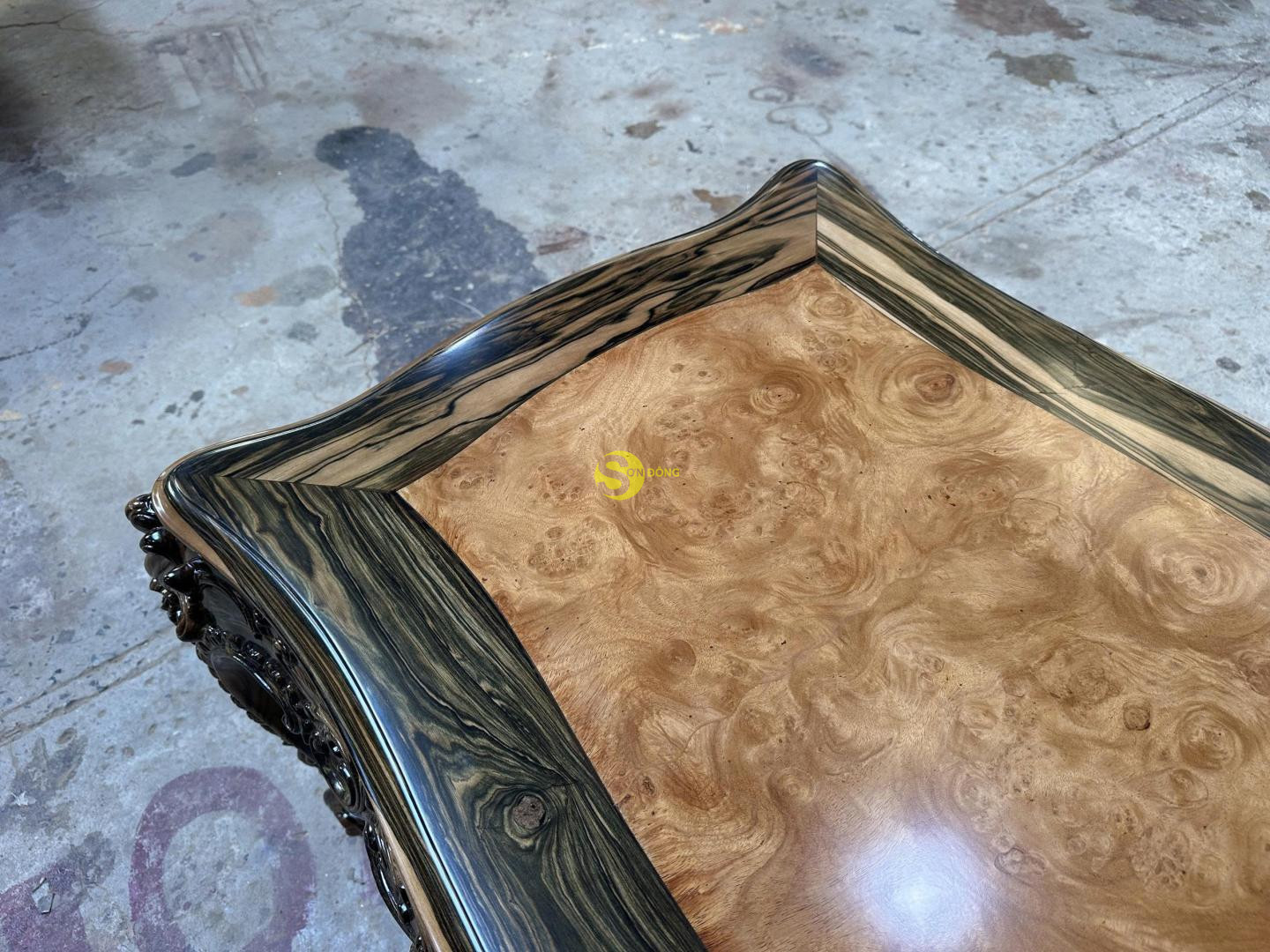• Chất liệu: Gỗ Mun sọc Lào kết hợp ván giữa nu gõ đỏ Lào (thang đố gõ đỏ Pachy)