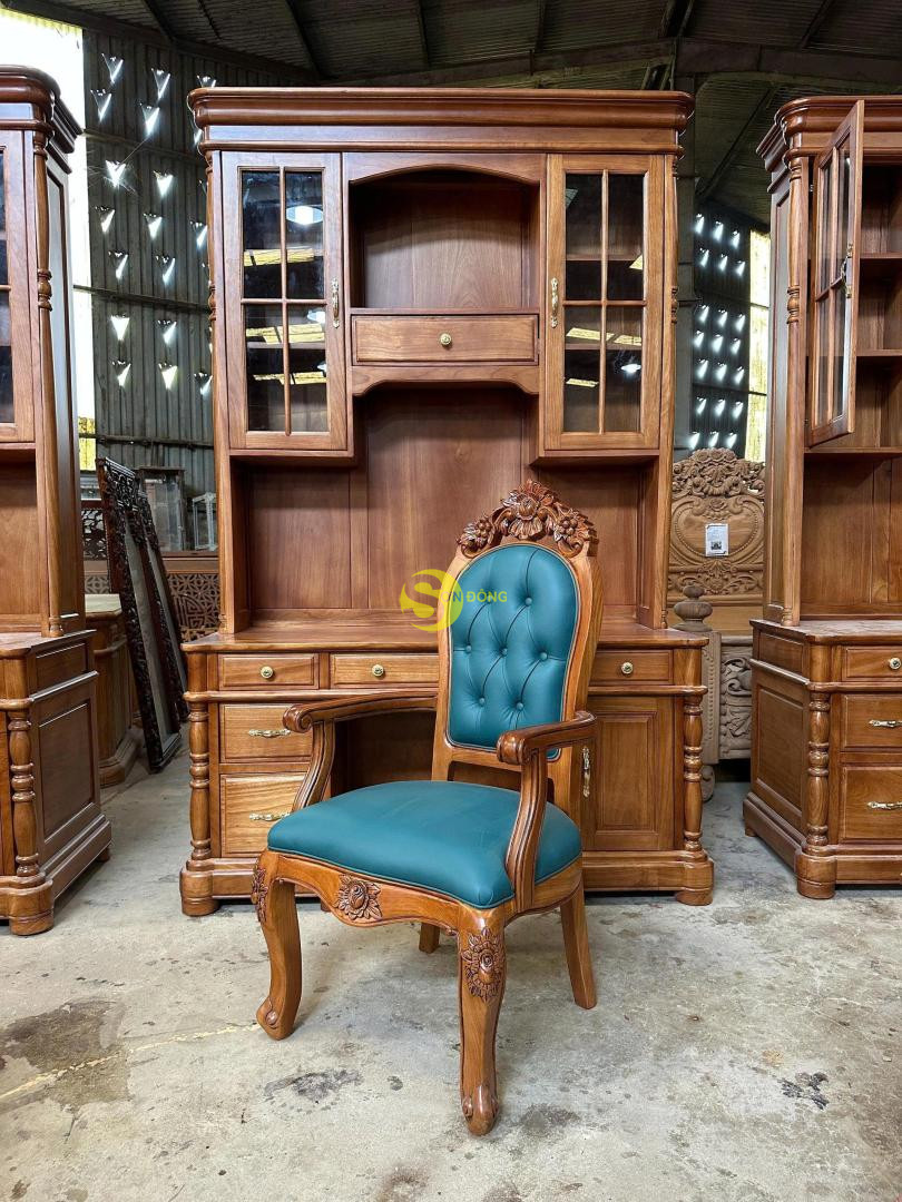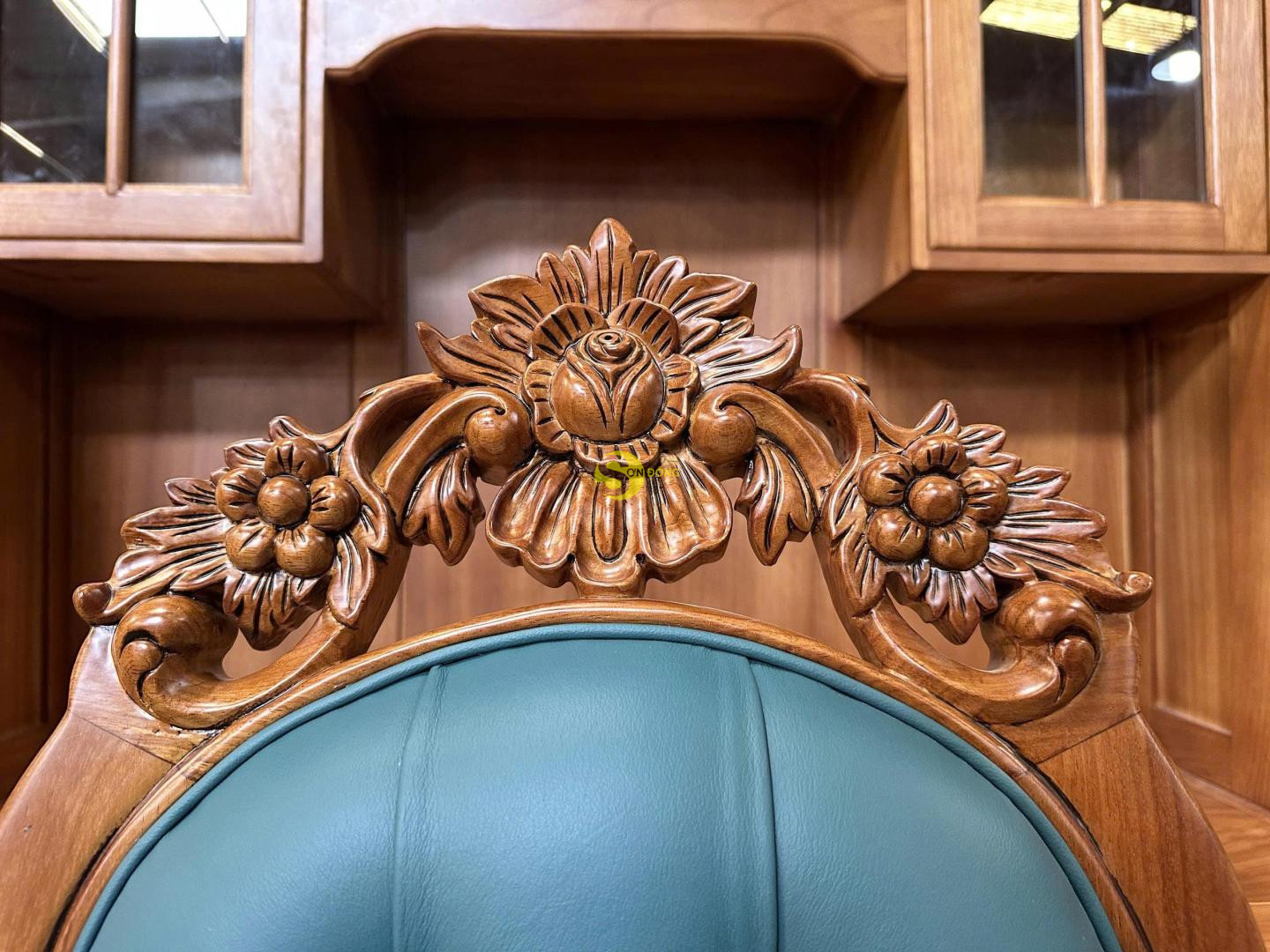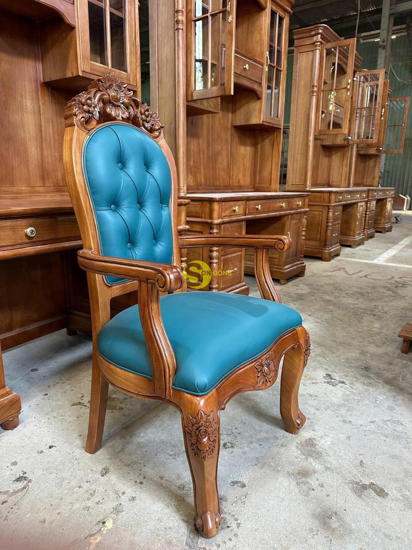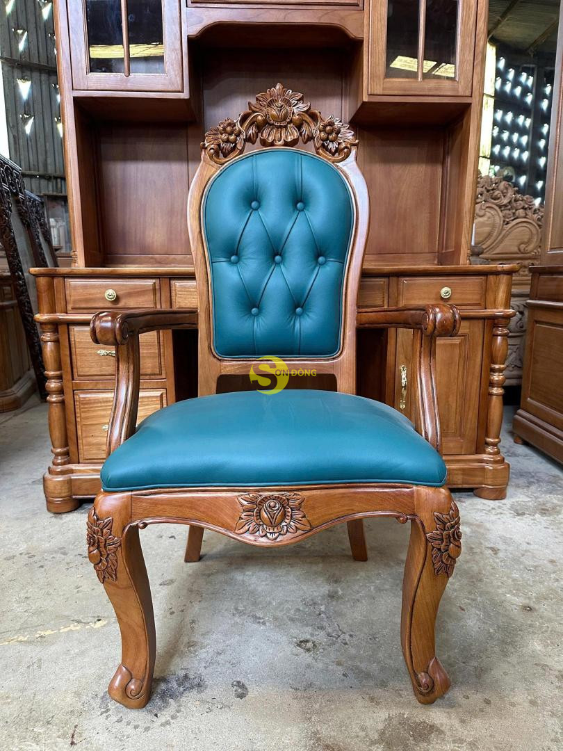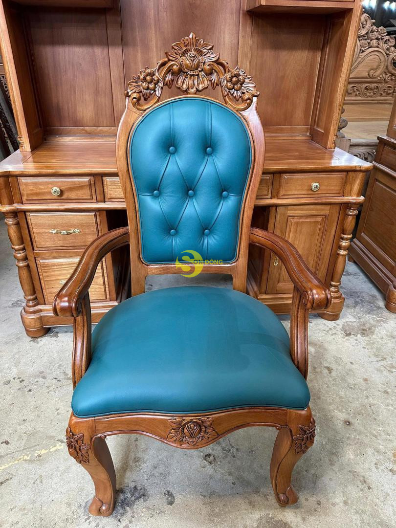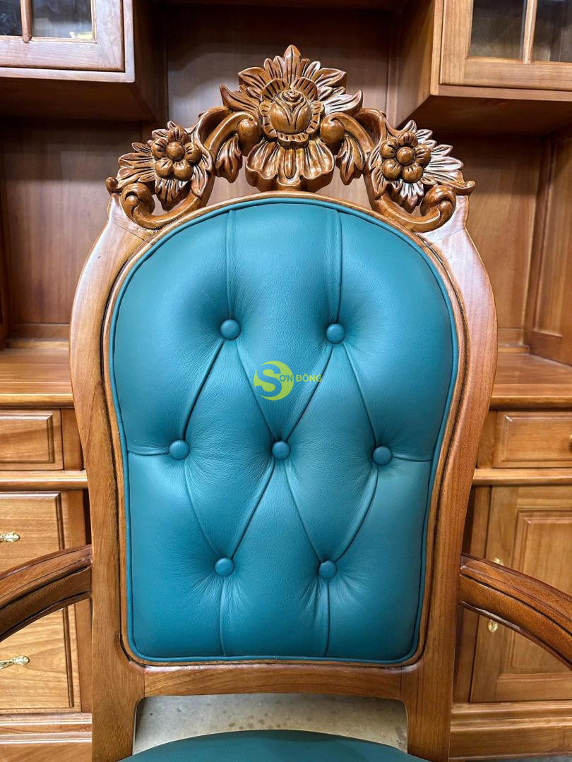 • Chất liệu: 100% Gỗ gõ đỏ Pachy (ghế bọc da bò Ý)
