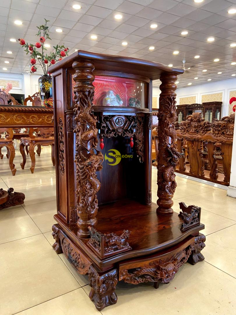 2. Bàn thờ ông địa gỗ cẩm lai rồng mây siêu vip 70cm hộp đèn – SD406