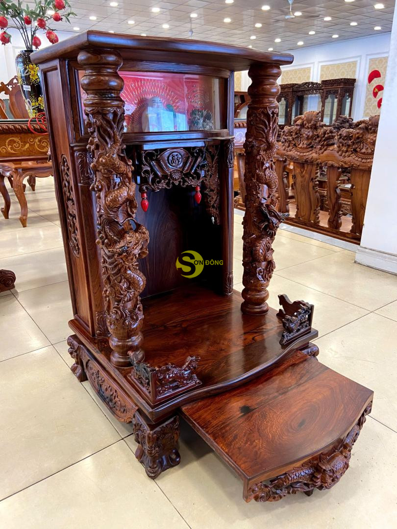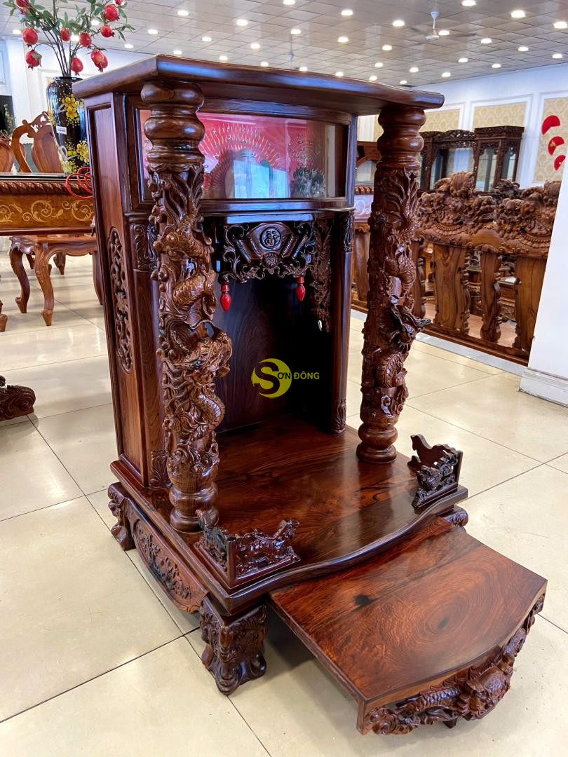 1. Bàn thờ ông địa gỗ cẩm lai rồng mây siêu vip 60 – SD405