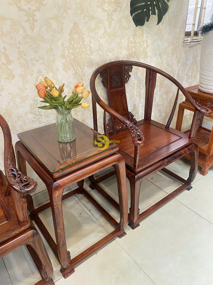 Bộ bàn ghế minh với kiểu dáng vô cùng độc đáo, ghế được thiết kế dạng cong, mang lại phong cách truyền thống sang trọng nhưng tinh tế và giá trị