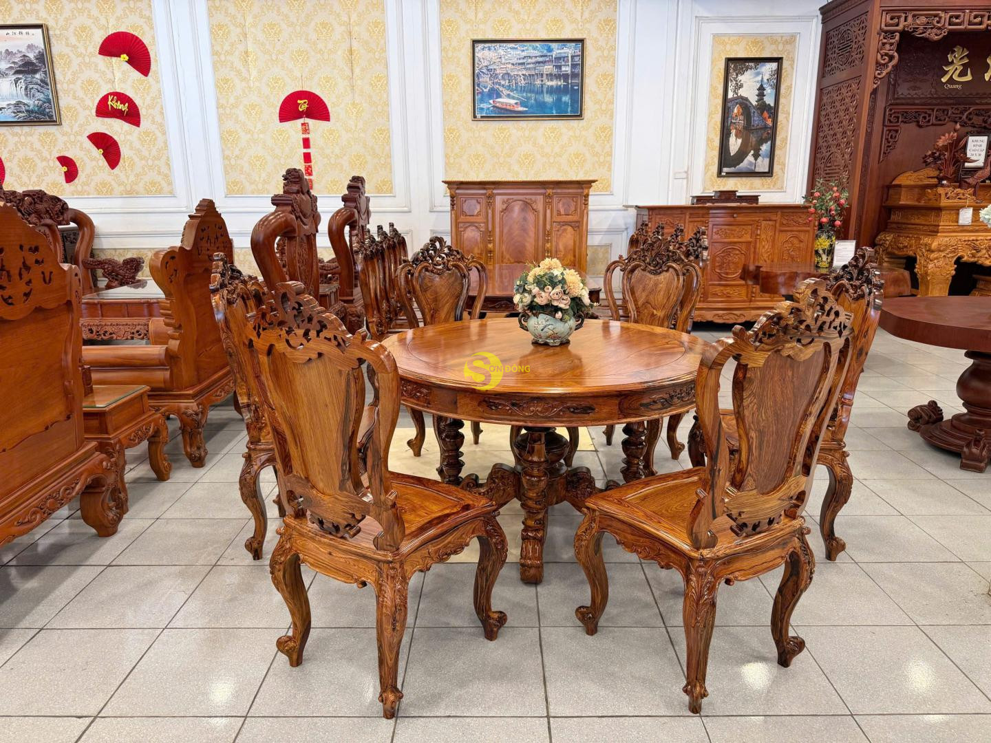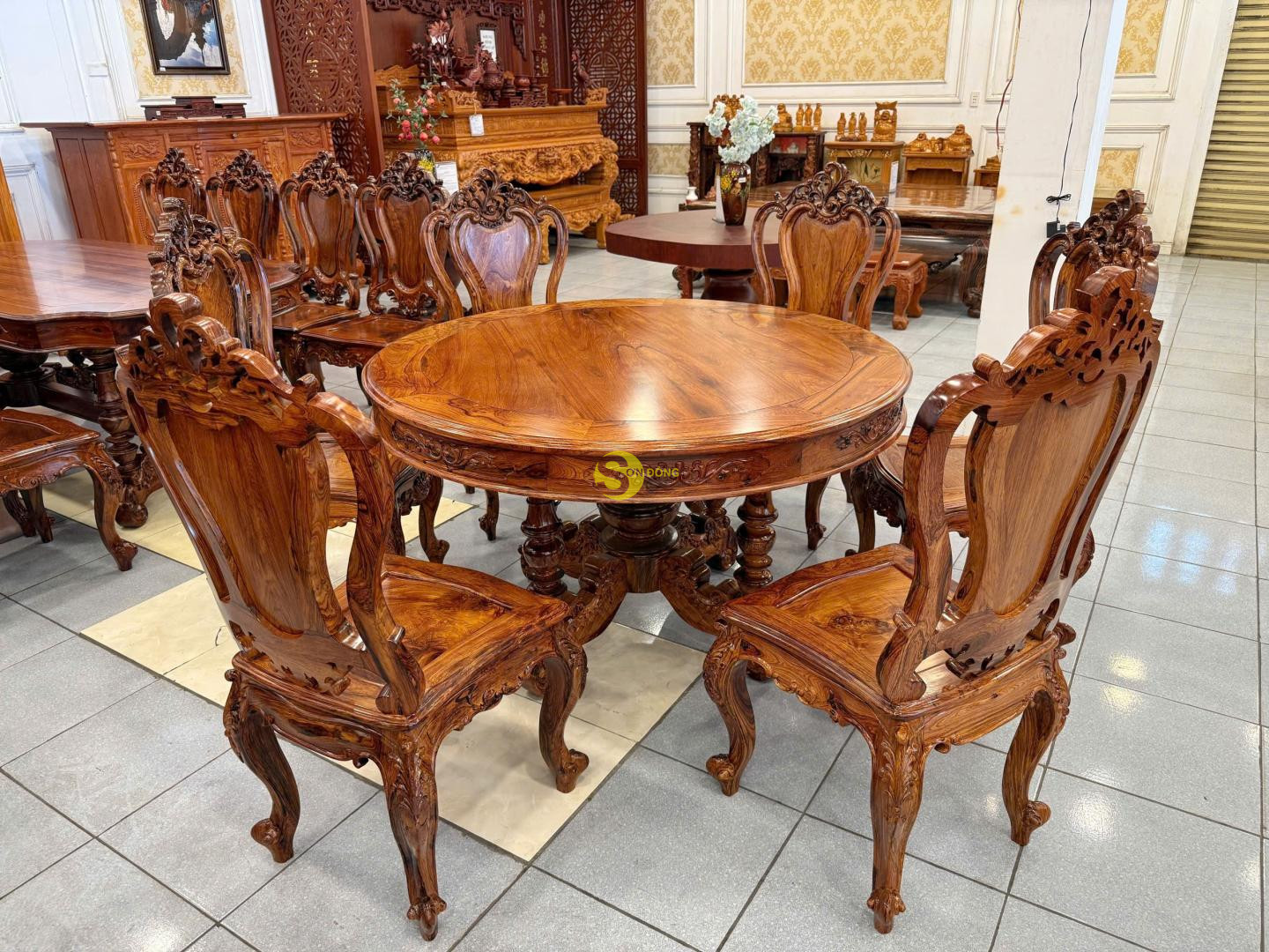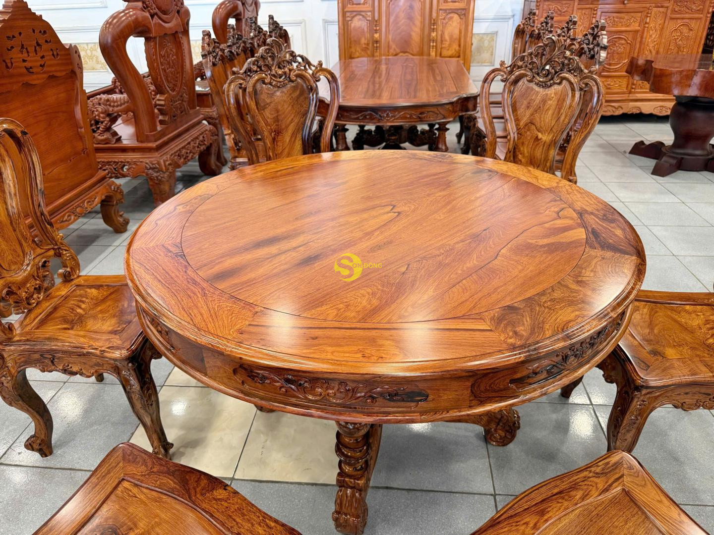 Bộ bàn ăn cẩm lai 6 ghế luois mặt bàn tròn – BBA436T