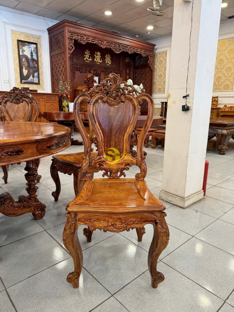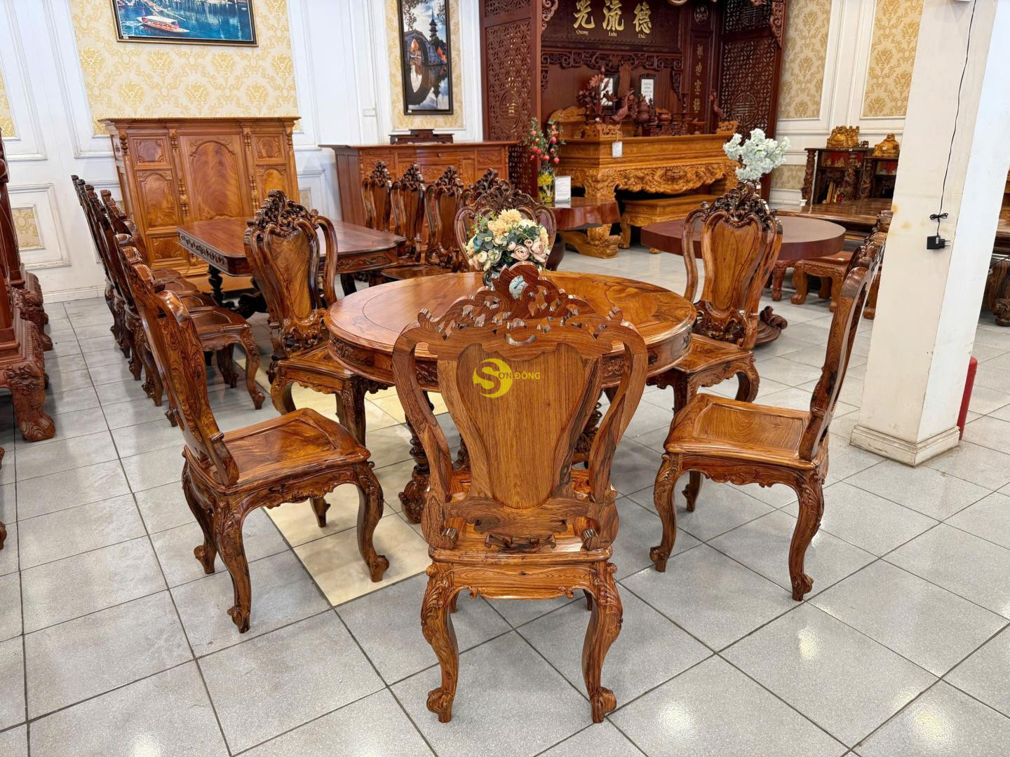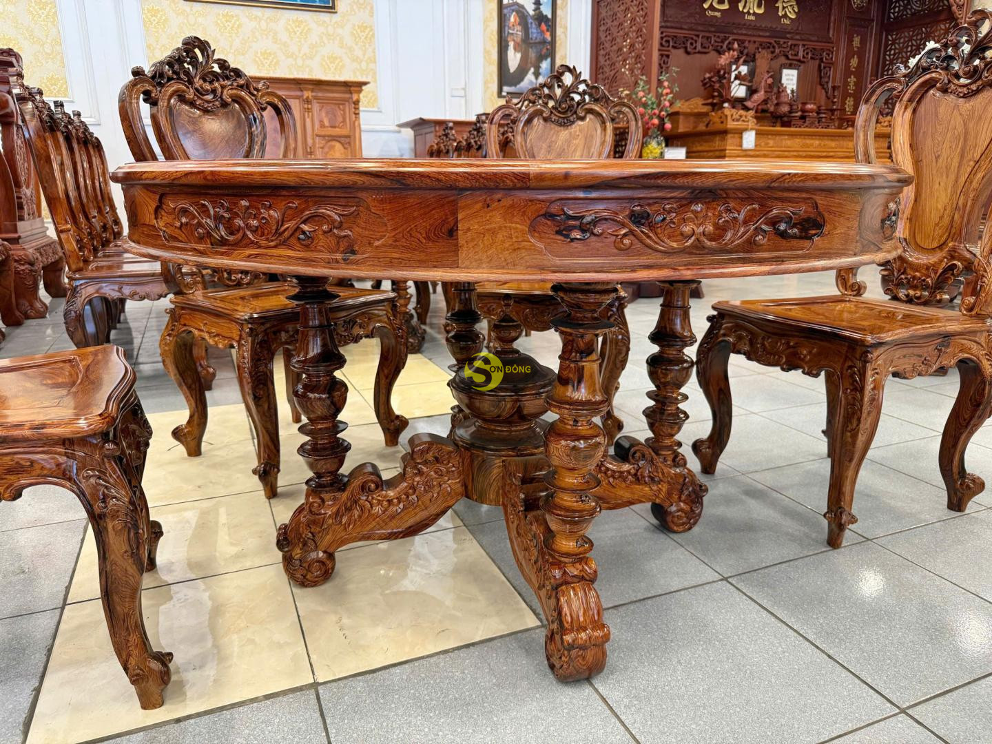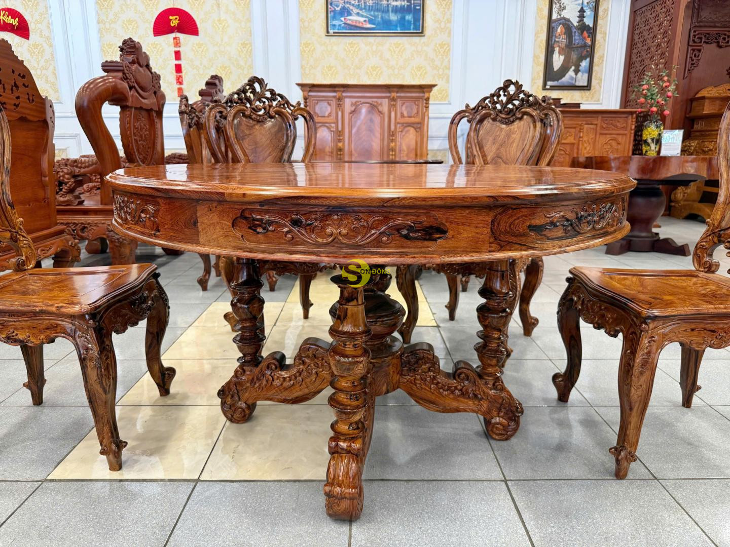 Bộ bàn ăn cẩm lai 6 ghế luois mặt bàn tròn – BBA436T
