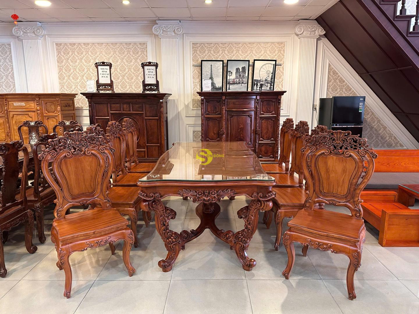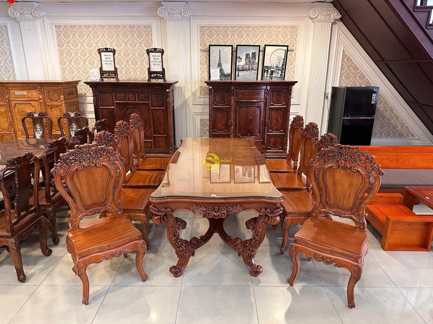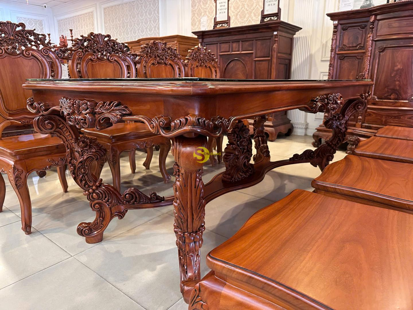 + Bàn ăn Louis Fidia cổ điển gõ đỏ sang trọng – BA2320