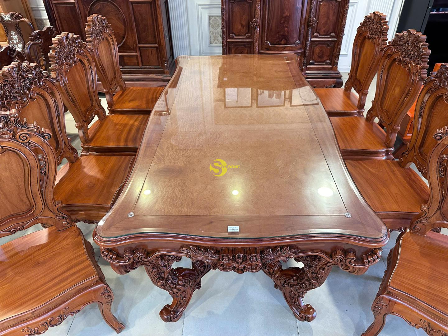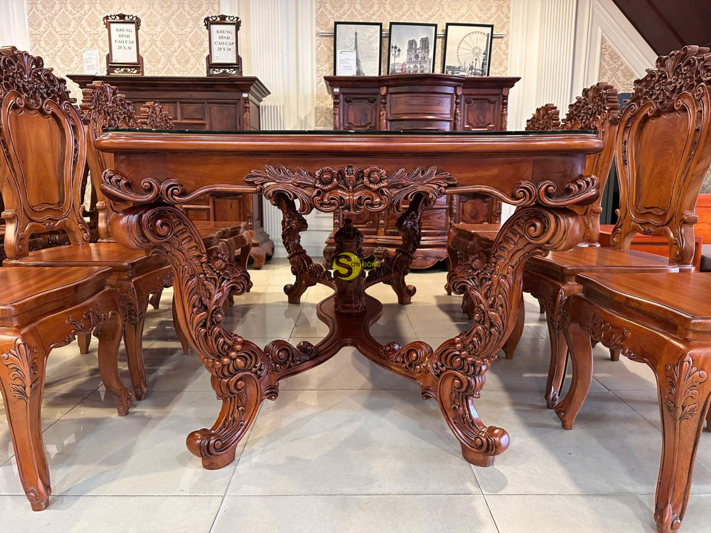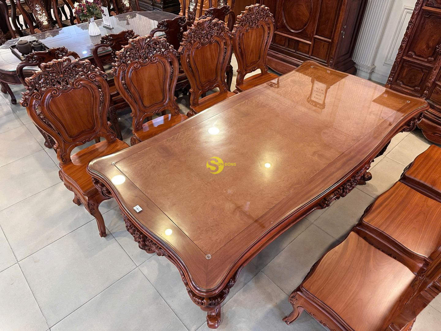 + Bàn ăn Louis Fidia cổ điển gõ đỏ sang trọng – BA2320
