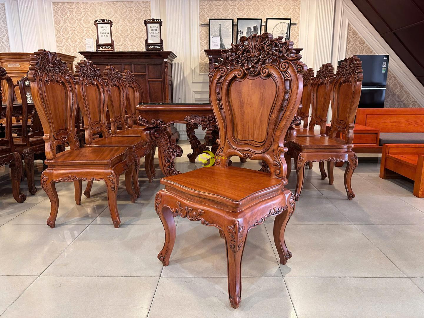 + Ghế ăn gõ đỏ luois cổ điển hoa hồng- GA32