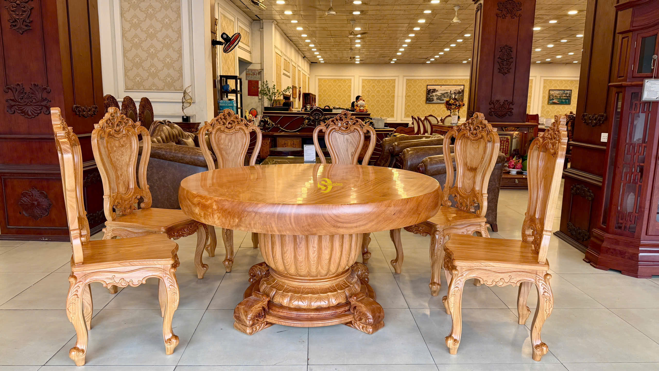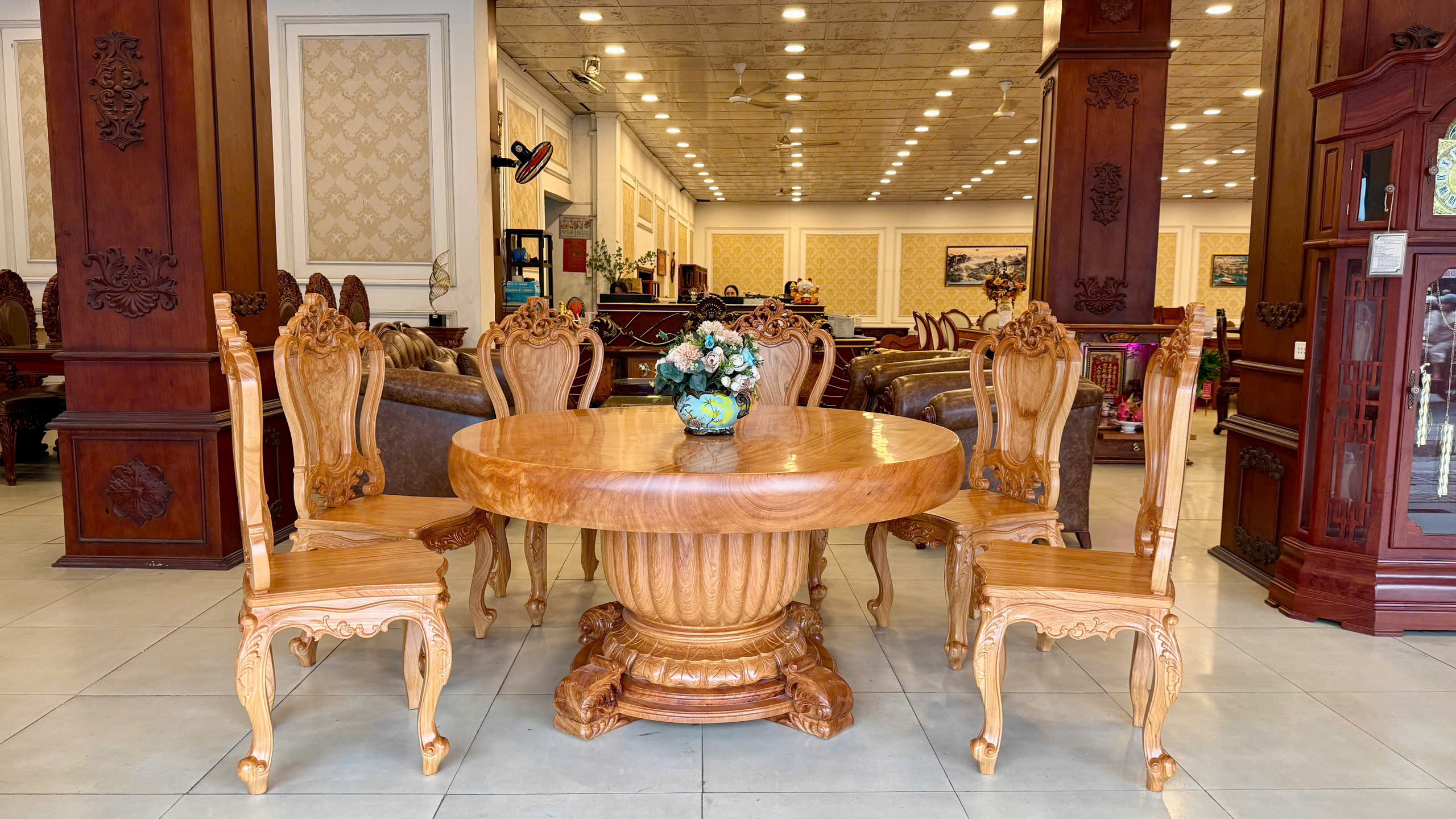 Bộ Bàn ăn tròn nguyên tấm 8 ghế | MBAT204 – CBA33DP – GA229