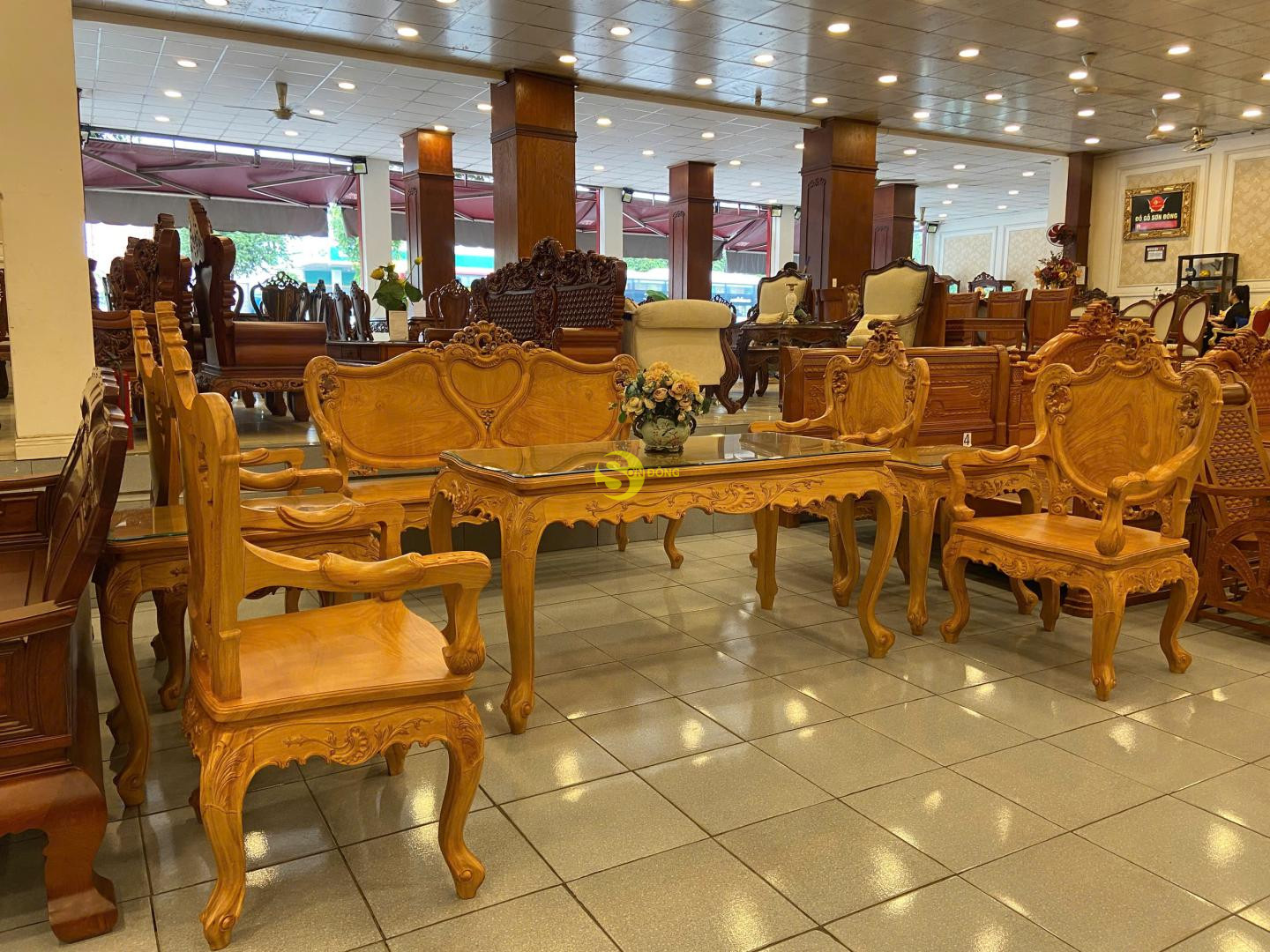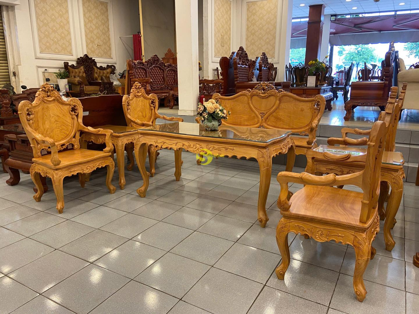 Bộ bàn ghế louis gõ đỏ mặt liền 3cm 8 món – BBG215