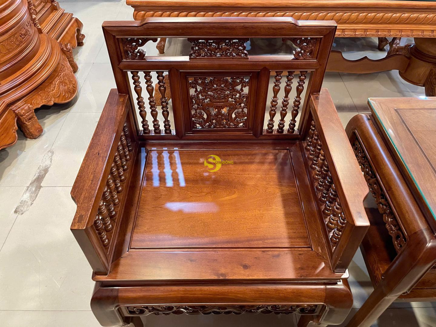 Bộ bàn ghế trường kỷ song tiện gỗ gụ 5 món- BBG2622