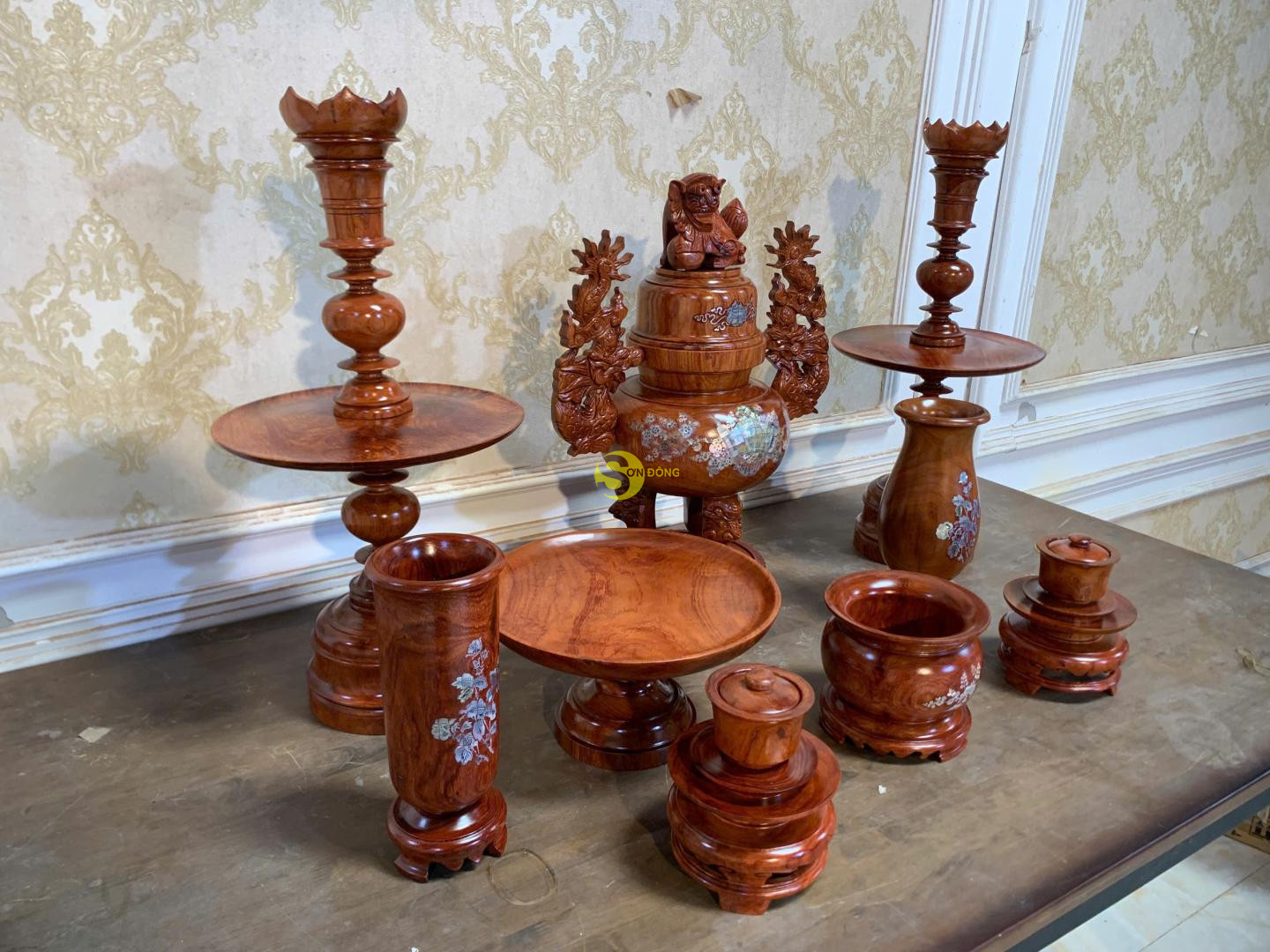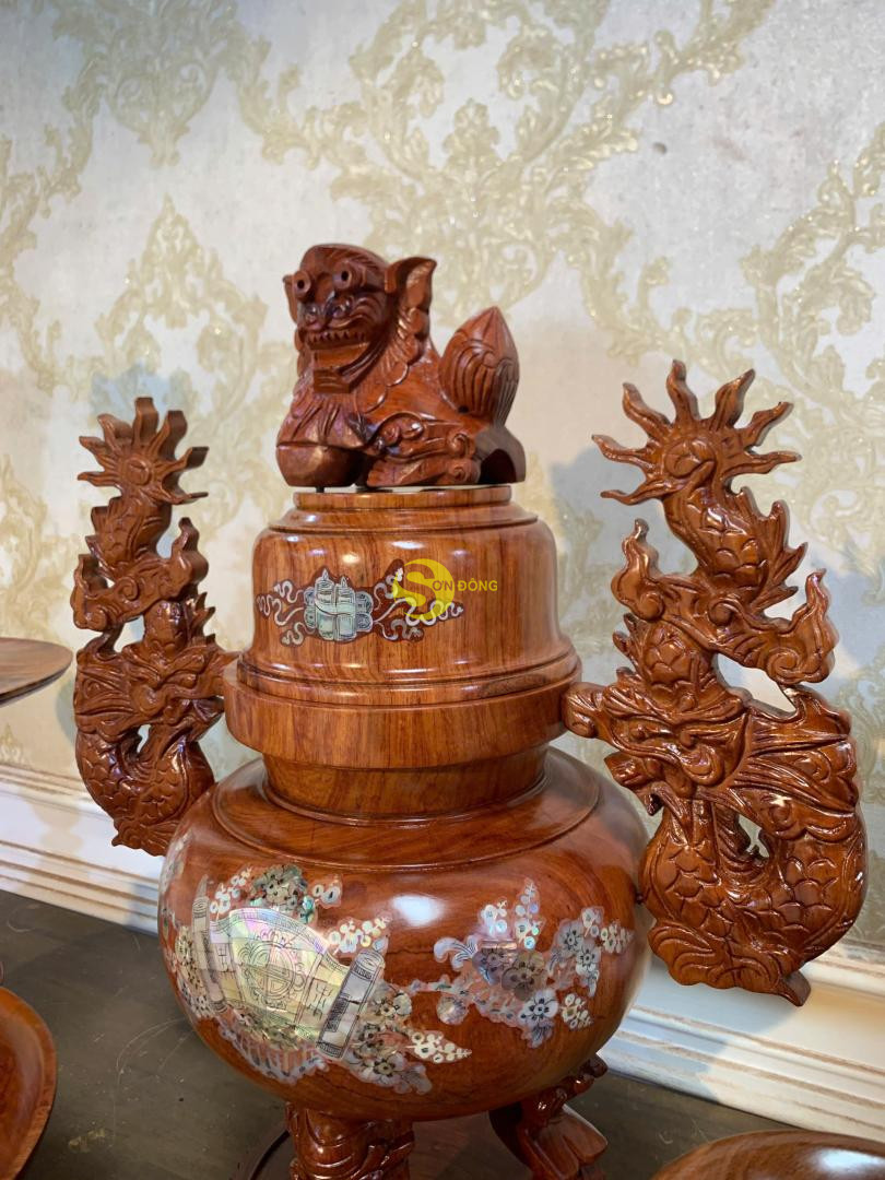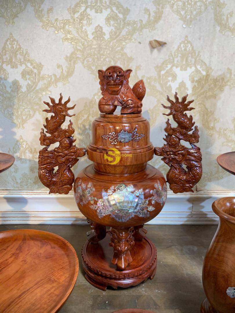 Bộ lư hương cẩn ốc gỗ hương Việt 50 – LH925