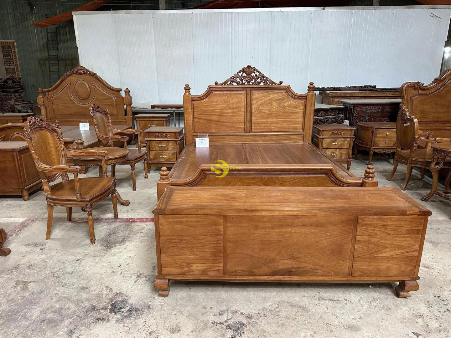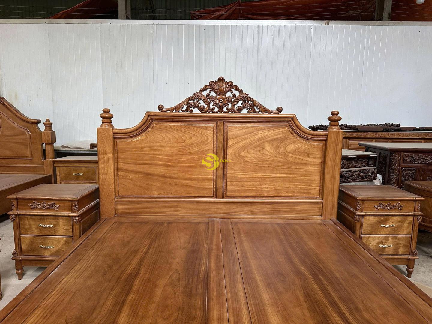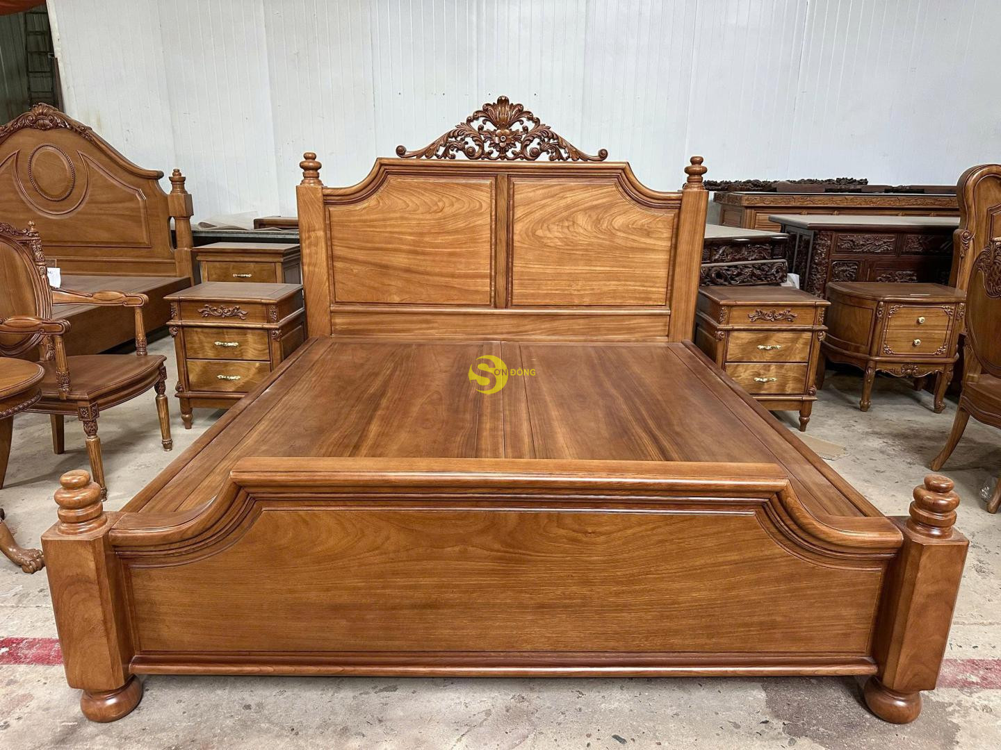1/ Giường ngủ gõ đỏ hoa văn VIP 5 dạt phẳng 2m x 2m2 – GN228 – Giá bán: 58.000.000đ