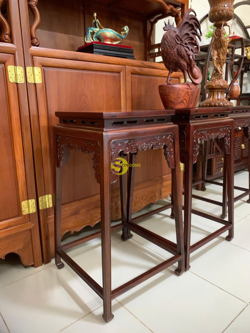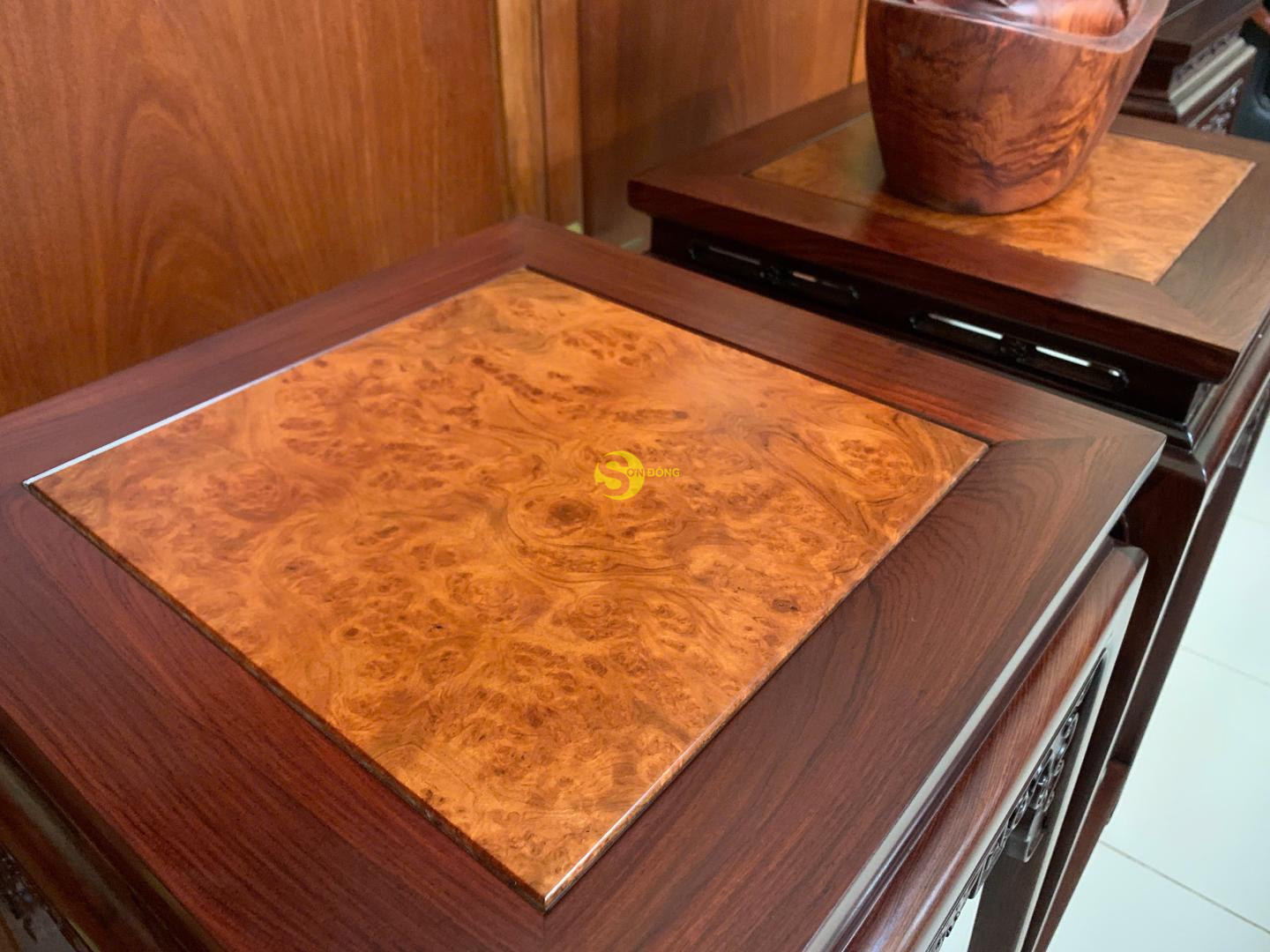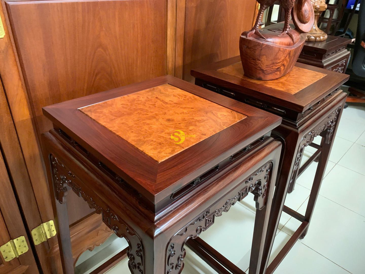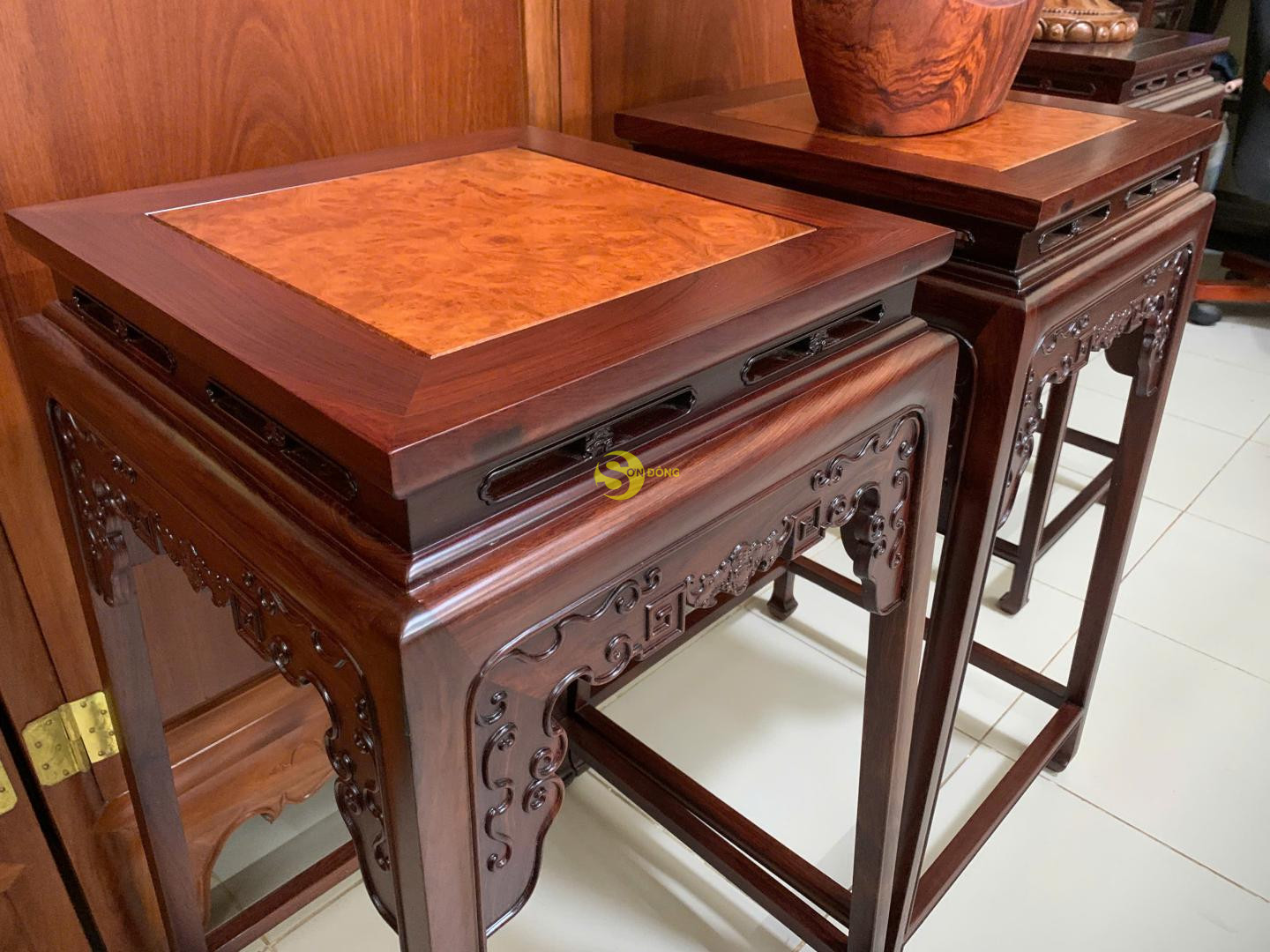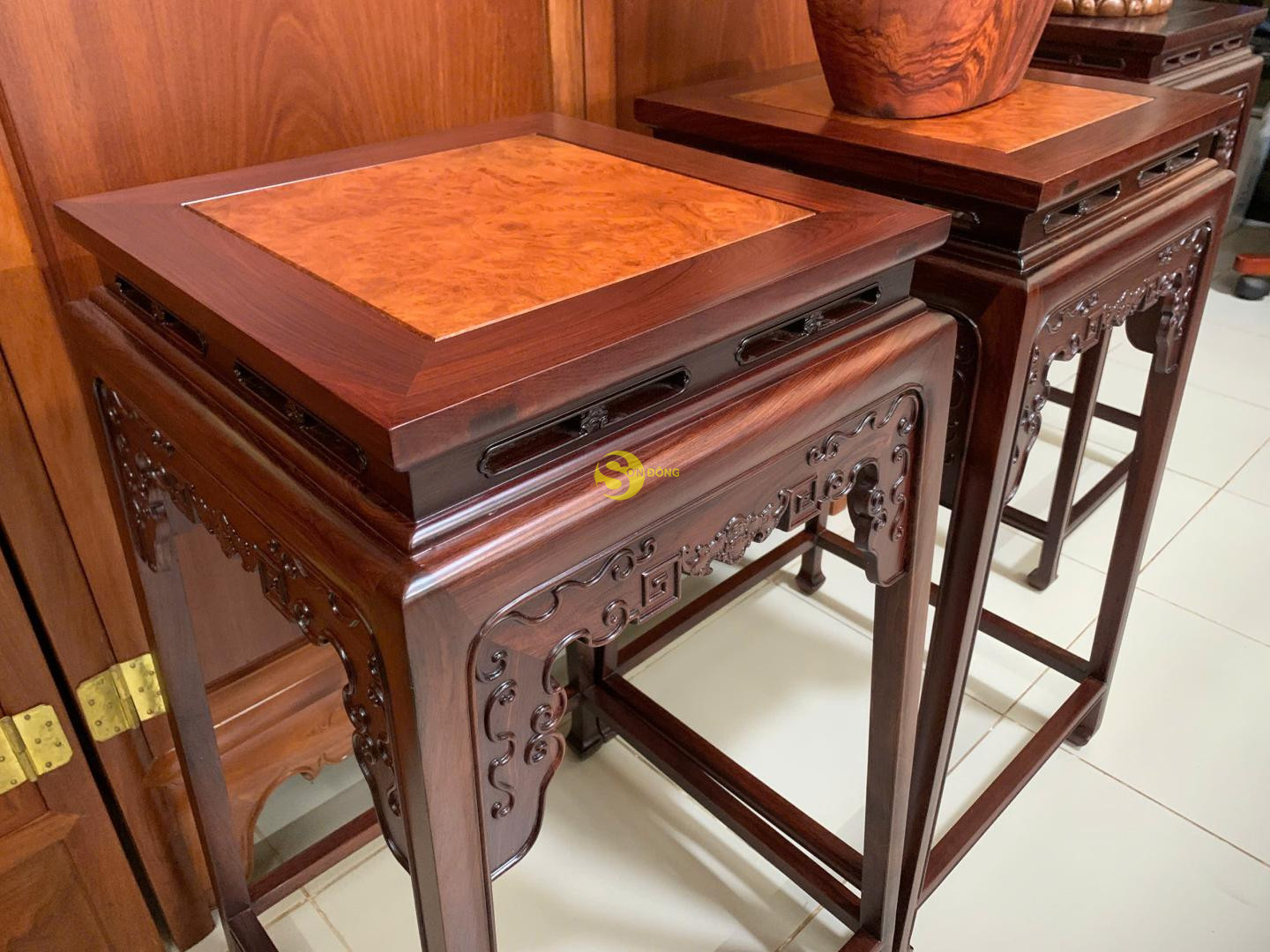 Chất liệu: Cẩm lai xịn Kích thước: Mặt vuông 380mm, phủ bì vuông 470mm Cao 800mm Giá bán: 13.000.000/cái Giá bán: 26.000.000/cặp