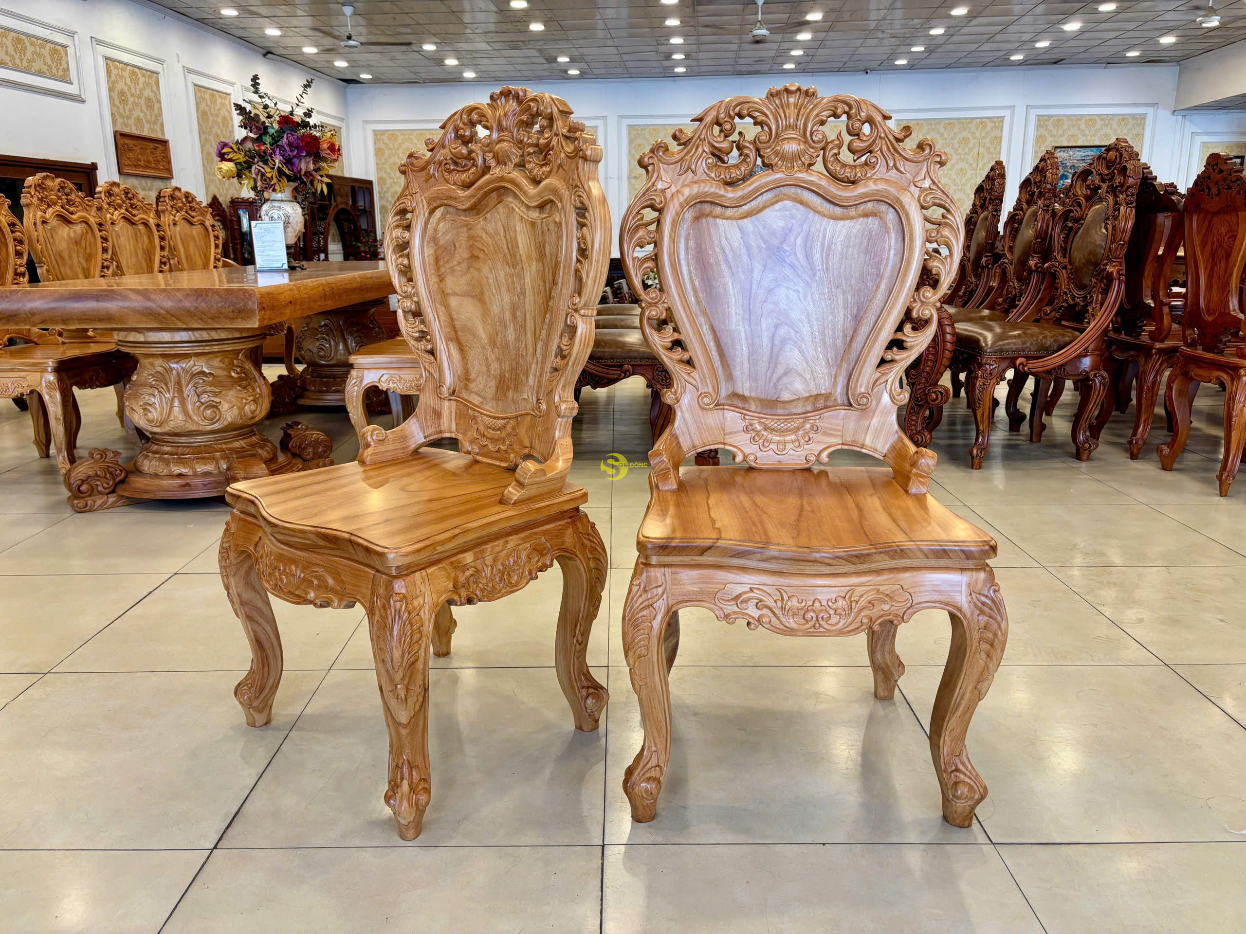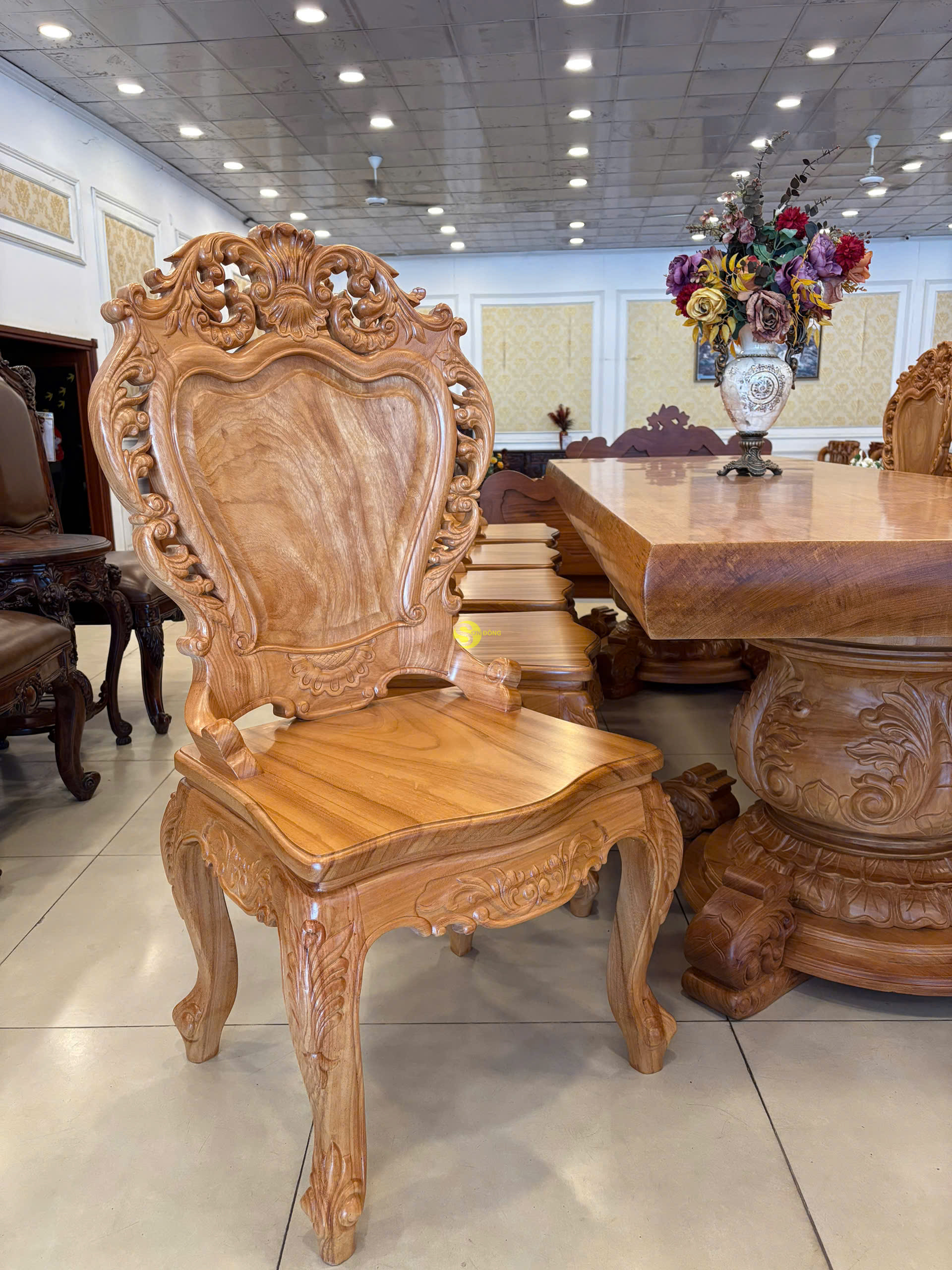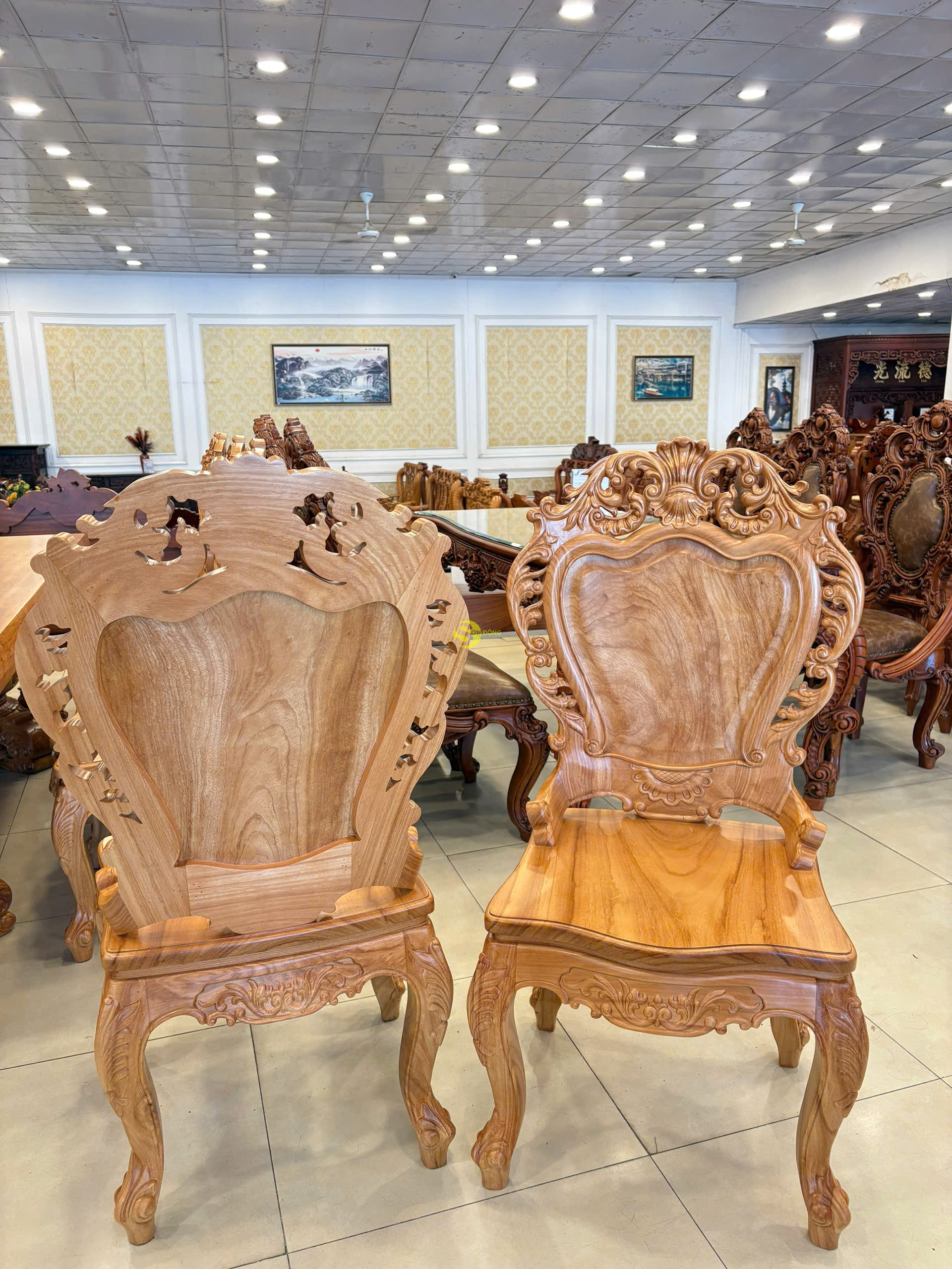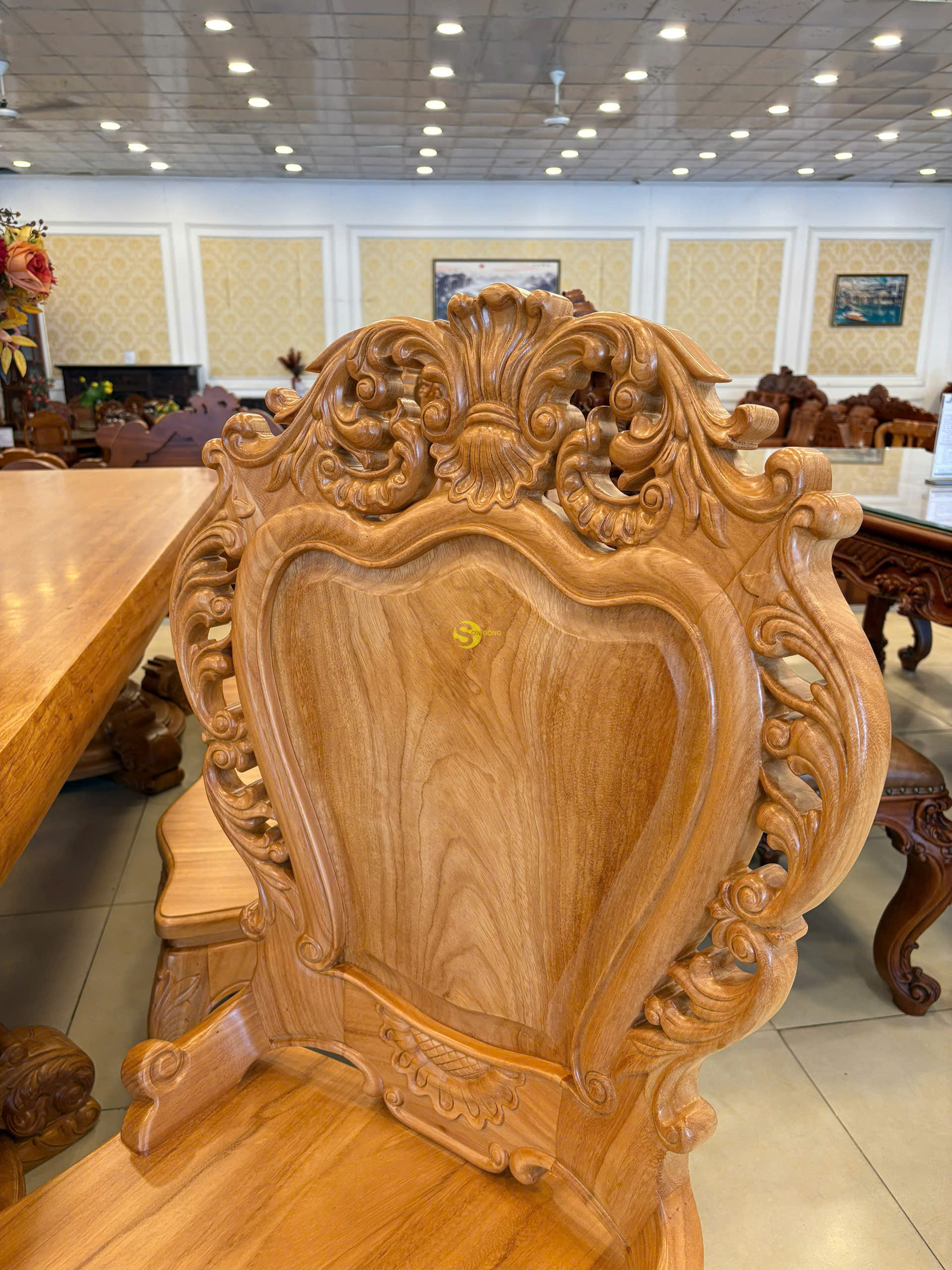 Chất liệu: gỗ gõ đỏ, tựa ghế làm bằng gõ Lào quý hiếm Kích thước : Cao 116cm, Ngang 62cm, Sâu 48cm.