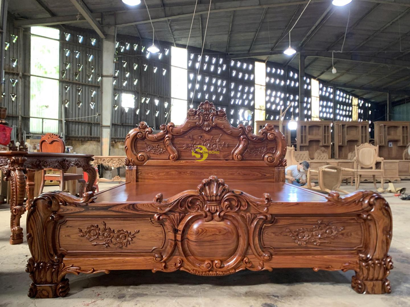 Giường ngủ cổ điển cao cấp hoa hồng gỗ cẩm lai 1m8x2m – GN417