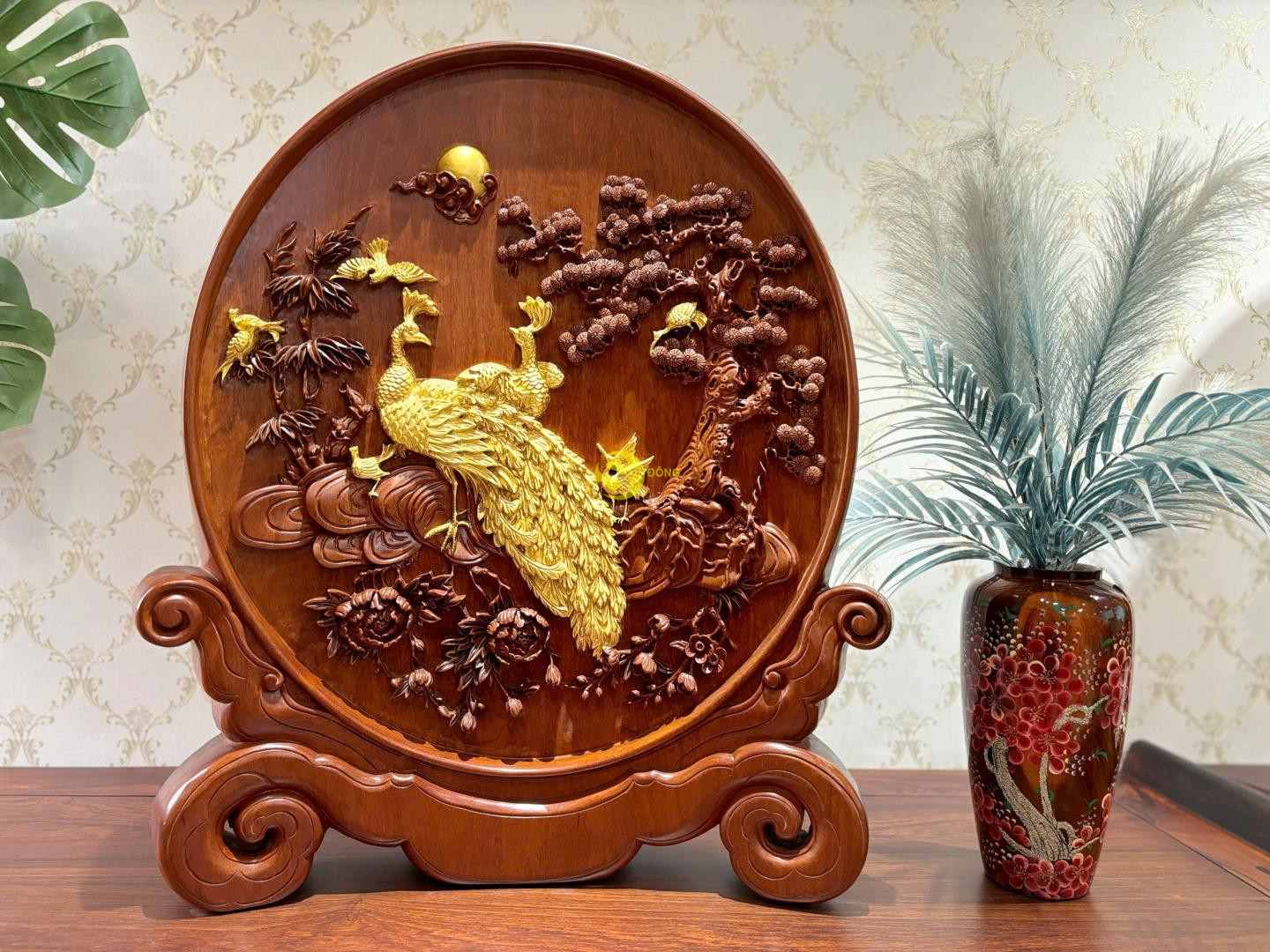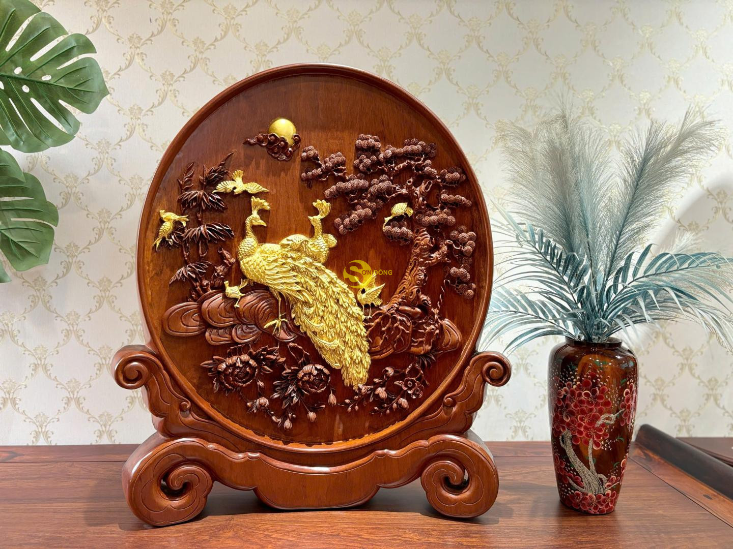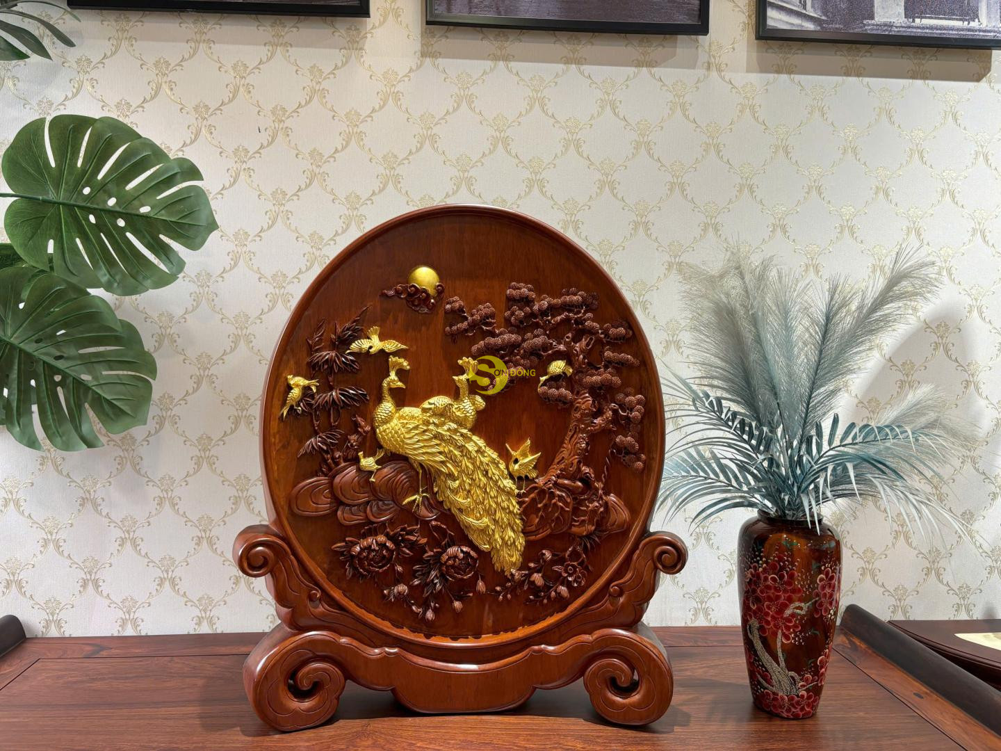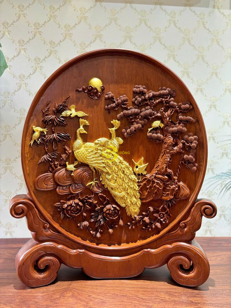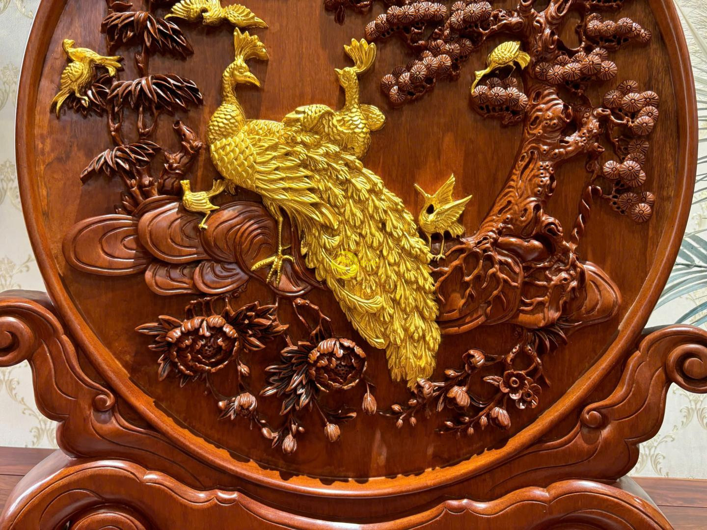 Sản phẩm được làm bởi dòng chất liệu gỗ gõ đỏ cao cấp nhóm 1, sở hữu độ bền và độ cứng chắt vượt trội kết hợp dát vàng ý cao cấp làm tôn lên giá trị của toàn bộ sản phẩm. Những họa tiết được đục chạm sâu bằng những đôi bàn tay của người thợ Sơn Đông lành nghề.