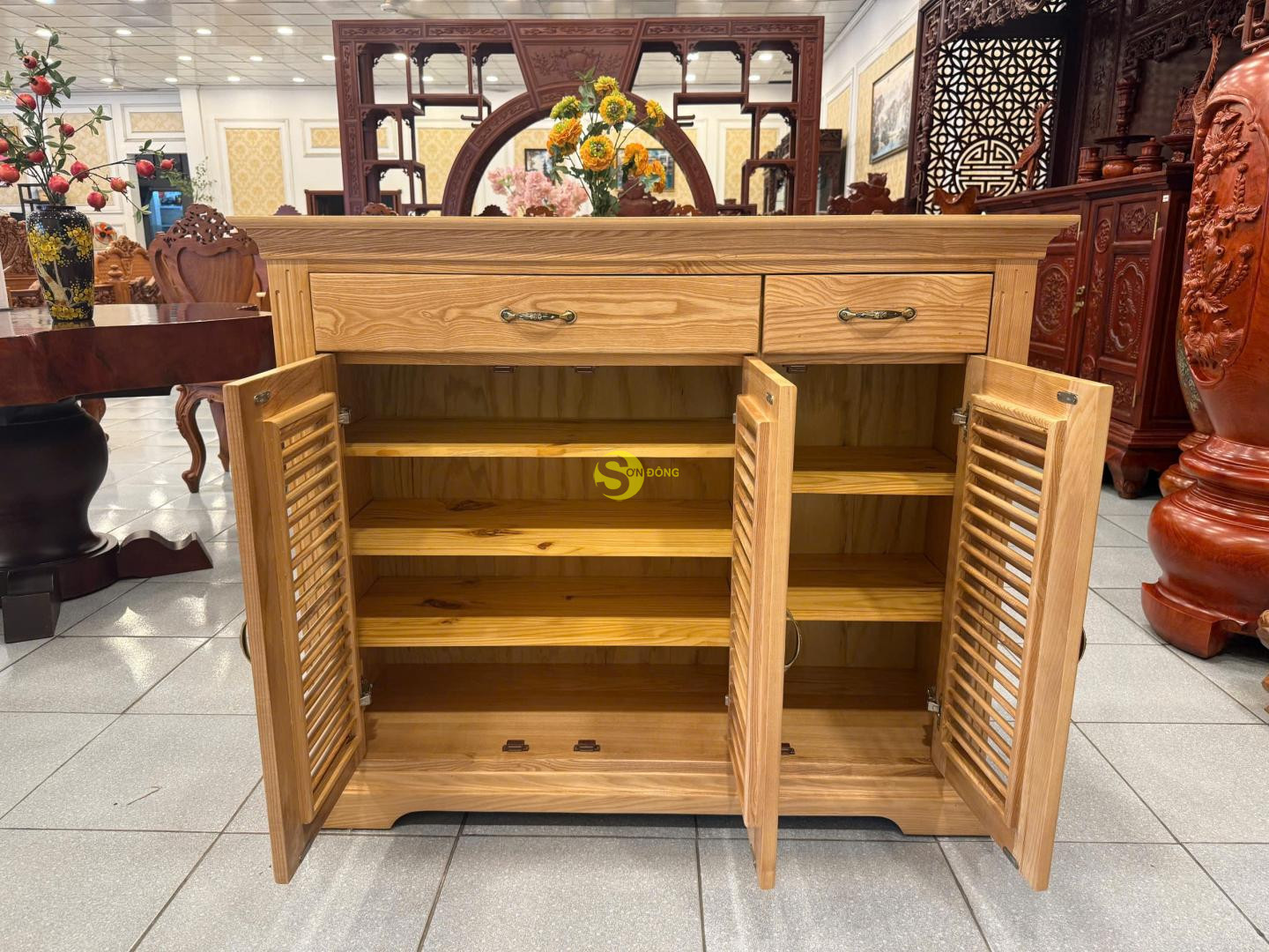 Chất liệu : gỗ sồi (Ván hậu là gỗ ép MDF veneer 2 mặt 9mm) Kích thước : ngang 1200mm, cao 1000mm, sâu 400mm, đợt để giày sâu 288mm