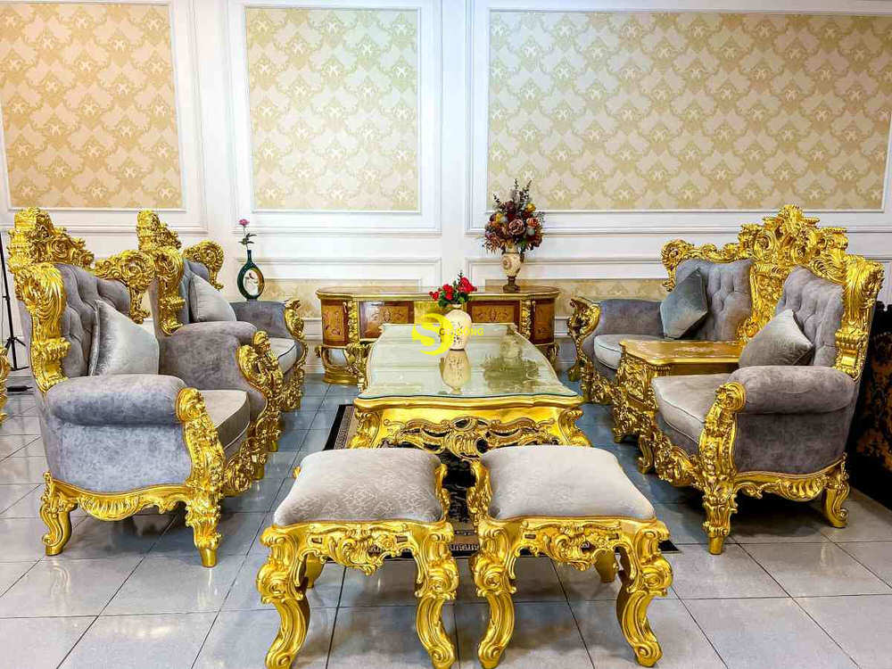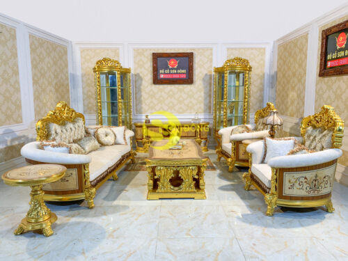 6/ Sofa Gỗ Phòng Khách Siêu Vip Dát Vàng Hoàng Gia Michael Jackson SF2011