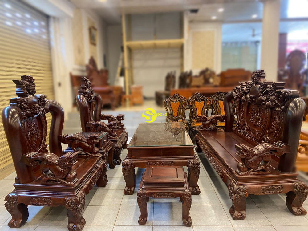 7/ Bộ bàn ghế muồng nghê đỉnh tay lân 6 món tay 16 BBG830