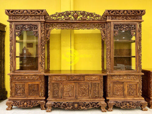 10/ Tủ rượu cẩm lai lớn Tứ Linh hội ngộ VIP – TRAS01