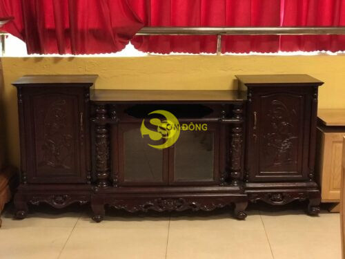 13/ Tủ ti vi chạm hoa sen gỗ gụ – TTV204