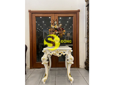 14/ Đôn trang trí Sơn trắng dát vàng 760x760x890 – DTT201